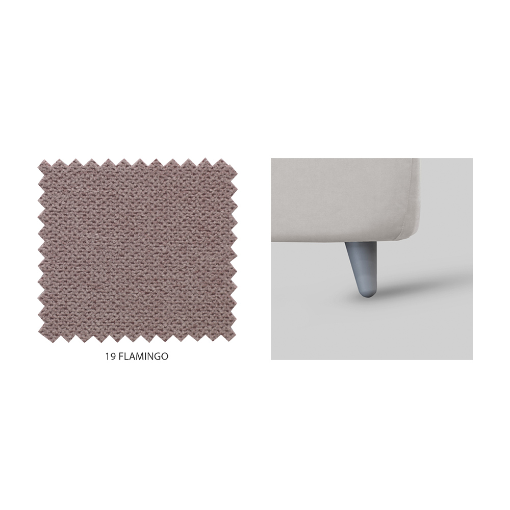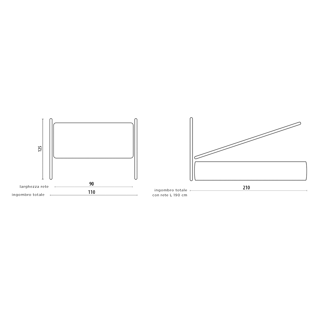Modell ohne Ringcontainer: gepolsterter Bettrahmen mit unterstützter Basis inklusive und bequemem 11 cm hohen Fuß, der die Reinigung unter der Struktur ermöglicht.