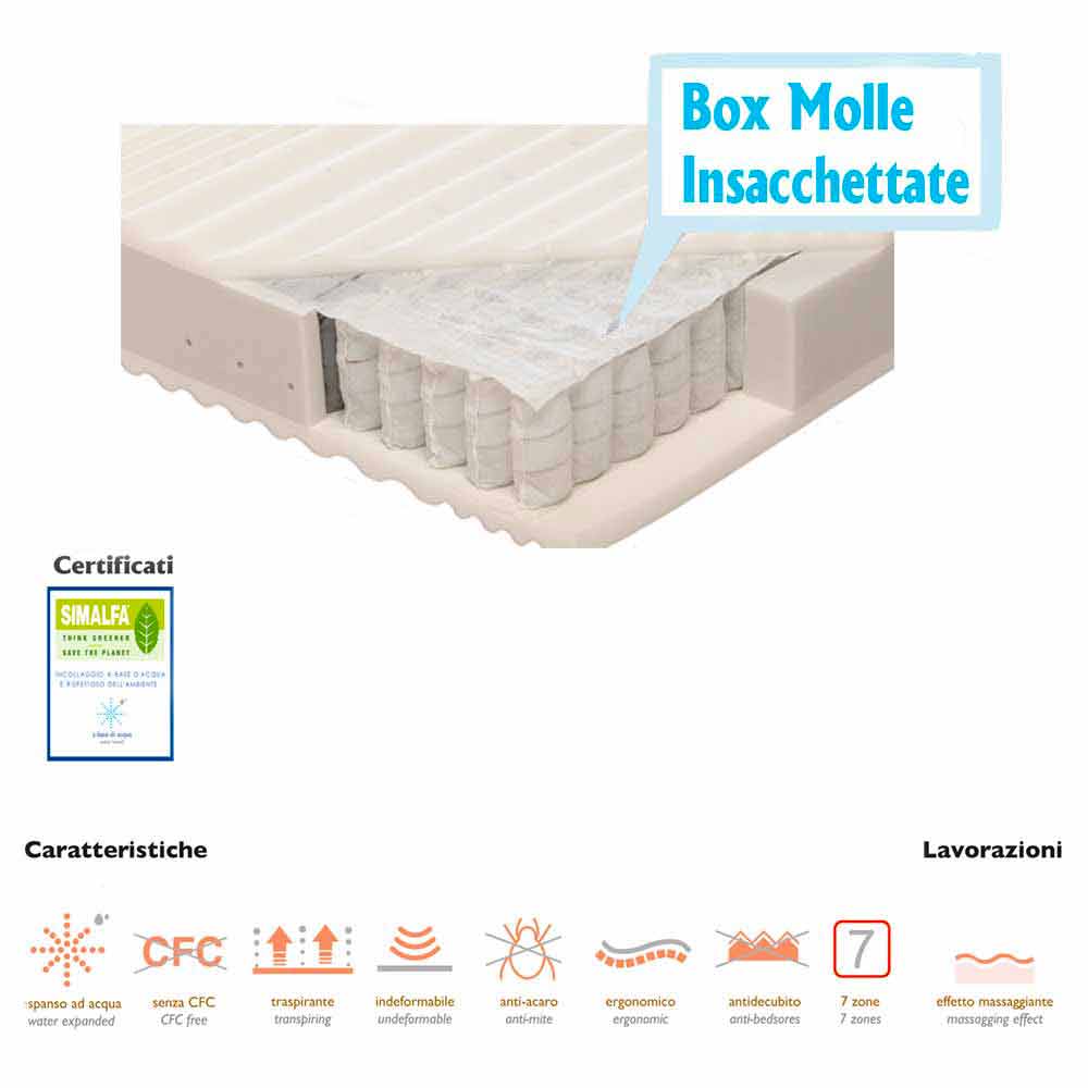 Die tragende Struktur der Taschenfederkernmatratze hat hervorragende Eigenschaften und macht die Matratze orthopädisch, aber gleichzeitig anatomisch mit hervorragenden Vorteilen für Wirbelsäule und Kreislauf.