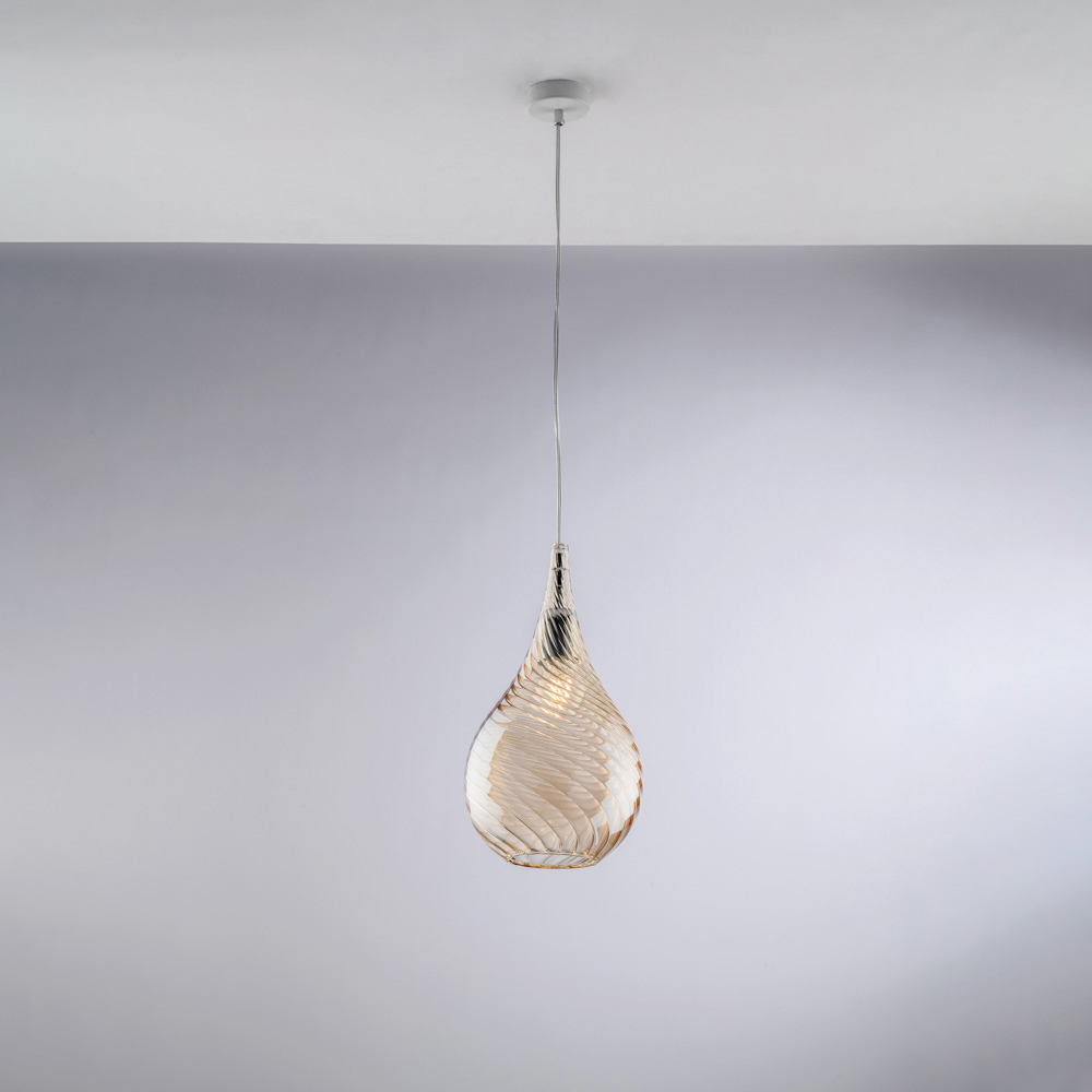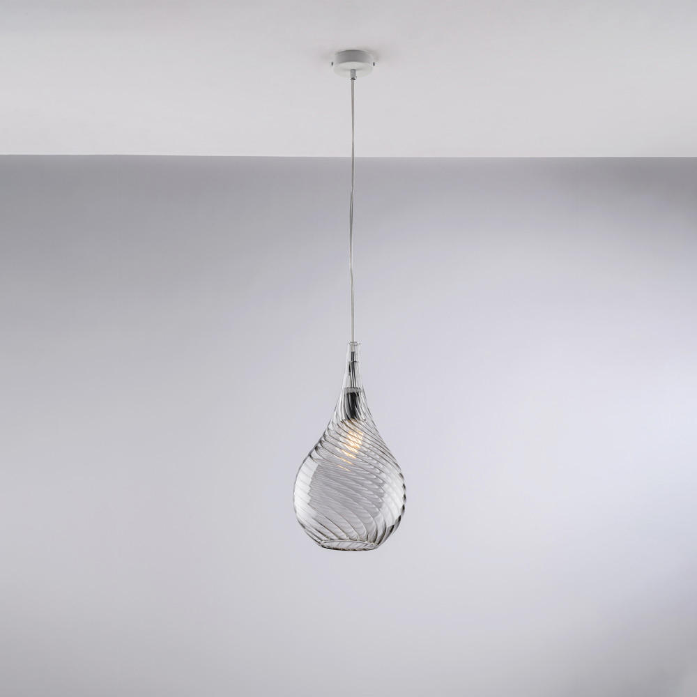 Diese Pendelleuchte ist in den Ausführungen Transparent , Bernstein oder Grau erhältlich und passt zu verschiedenen Einrichtungsstilen: hell und luftig in der transparenten Variante, warm und behaglich in Bernstein, modern und elegant in Grau. Sie eignet sich perfekt für Küchen, Kücheninseln, Esstische, Flure, Leseecken und exklusive Objekträume und kann sowohl einzeln als auch in Kombination mit anderen Leuchten eingesetzt werden.