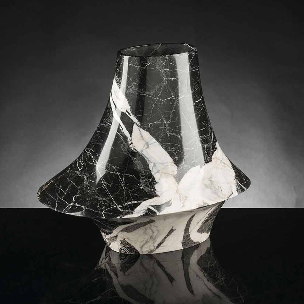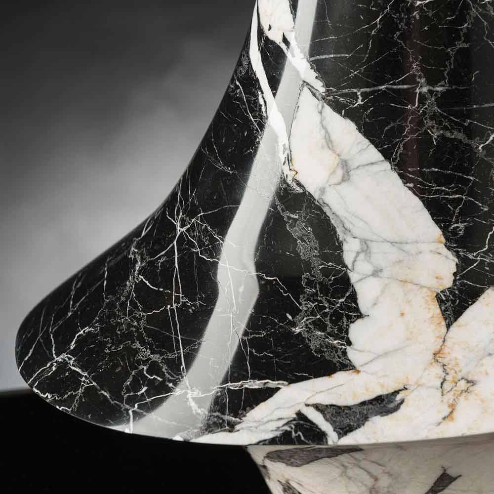 Ziervase für den Innenbereich aus schwarzem Marmor mit weißen Adern durch eine 100% Made in Italy Produktion . Seine Herstellung erfolgt durch die Verarbeitung von Natursteinen mit 5-Achsen-Stromabnehmern, die es ermöglichen, komplexere Formen als einfache Rotationsvolumina zu erhalten. Dieses elegante Möbelstück entsteht aus der Verbindung zwischen dem Studium der Naturphänomene und dem Zusammenspiel der verwendeten Materialien mit der menschlichen Technologie, um einen einzigartigen und avantgardistischen Möbelstil zum Leben zu erwecken. Das Ergebnis ist ein exklusives Dekorationselement , das jede Umgebung mit einer modernen und raffinierten Ästhetik mit Persönlichkeit bereichert. Ein idealer Stil für die unterschiedlichsten Umgebungen, von der Wohnungseinrichtung bis hin zu Hotels, Restaurants, Objektbereichen, Spas, aber auch als Rahmen für Veranstaltungen und Hochzeiten.
