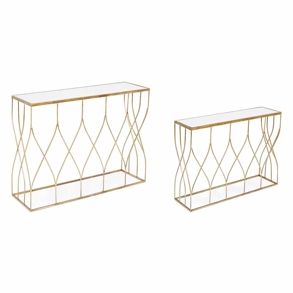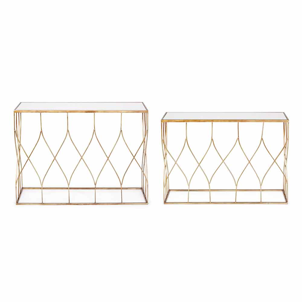 Diese Designkonsolen haben eine elegante Struktur aus epoxidpulverbeschichtetem Stahl und eine Glasplatte .