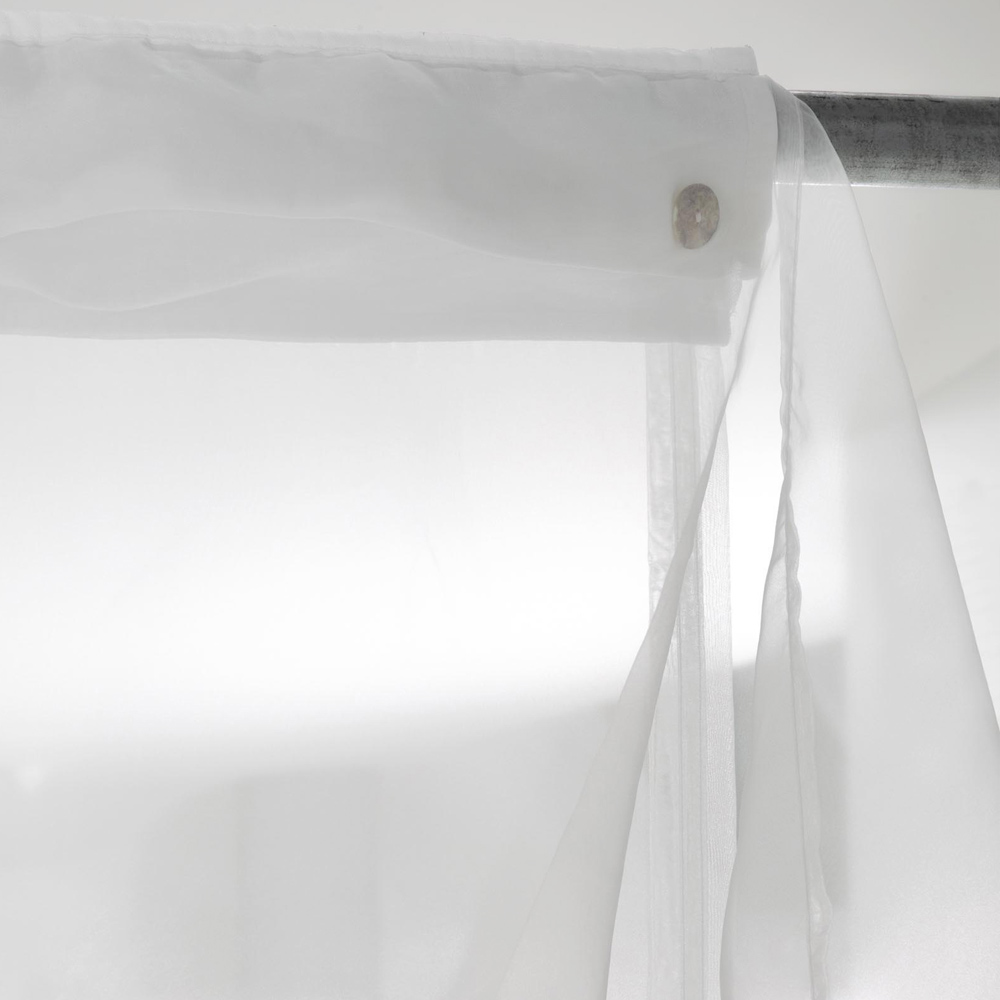 Organza-Vorhang mit Volant und Verschluss für Stange mit Perlmuttknöpfen, handgefertigte Qualität made in Italy.