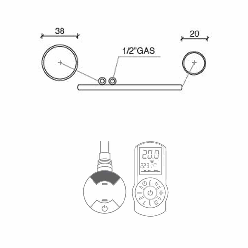 Enthalten ist der elektrische Widerstand mit Infrarot, der mit einer Standardfernbedienung ausgestattet ist, ein 1200-mm-Kabel mit Schuko-Stecker und eine Glykol-Ergänzung, die als Frostschutz- und Rostschutzmittel zum Schutz des Systems verwendet werden kann.