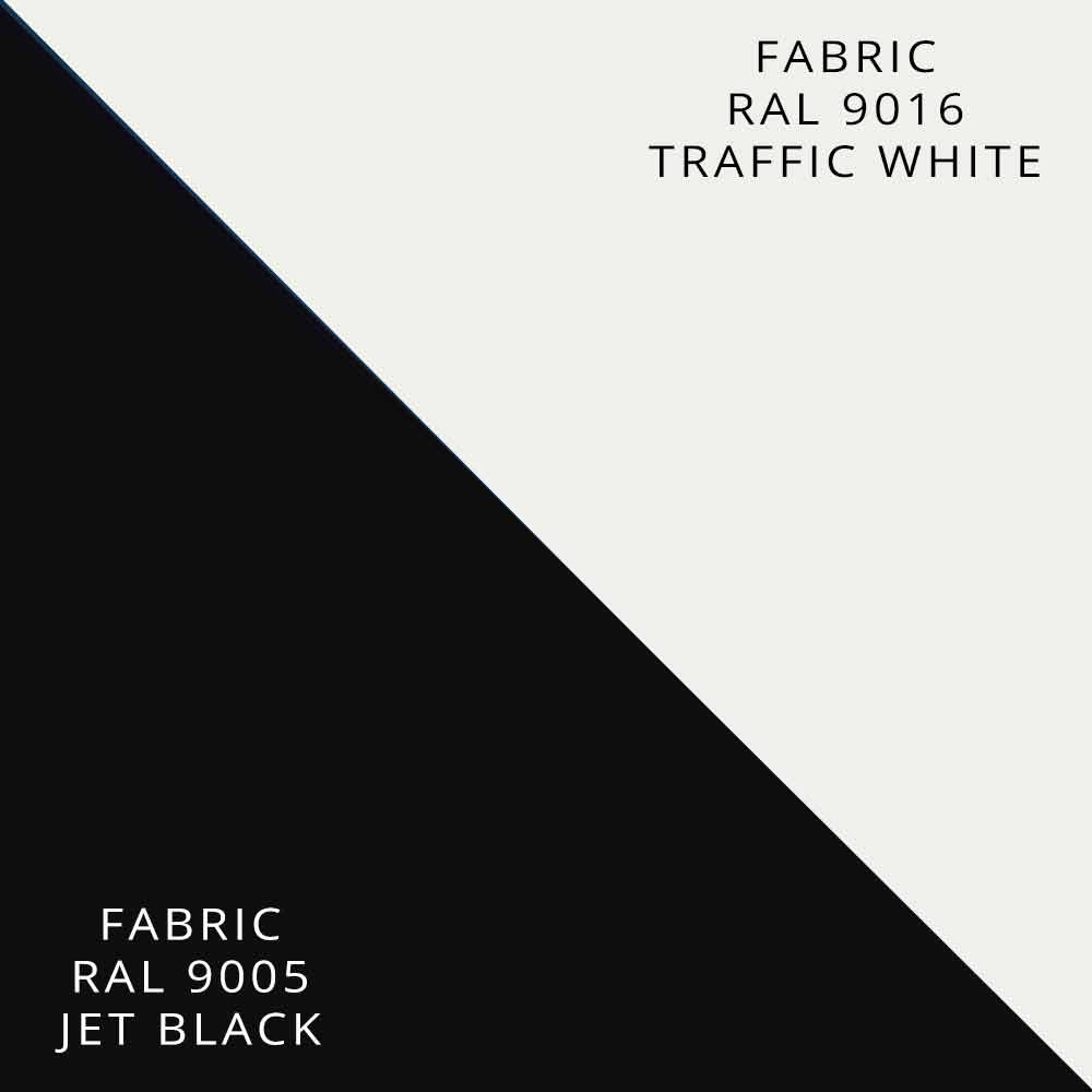 • Kombination 7: matt rauhe schwarze Struktur und doppelseitiges Gewebe RAL 9005/9016 schwarz / weiß.