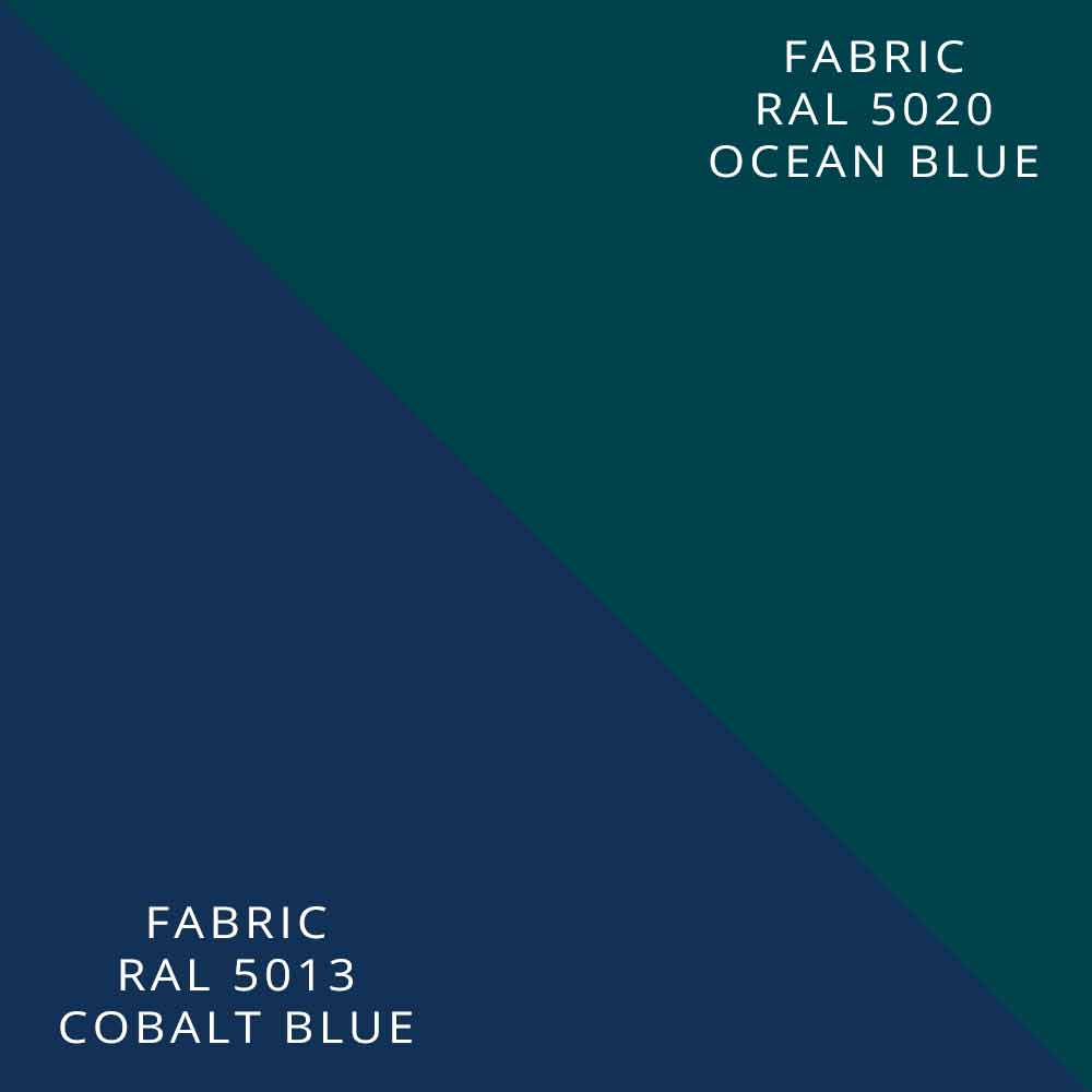 • Kombination 5: Struktur RAL 7015 rau schiefergrau matt und doppelseitig Stoff RAL 5013/5020 blau / benzingrün.