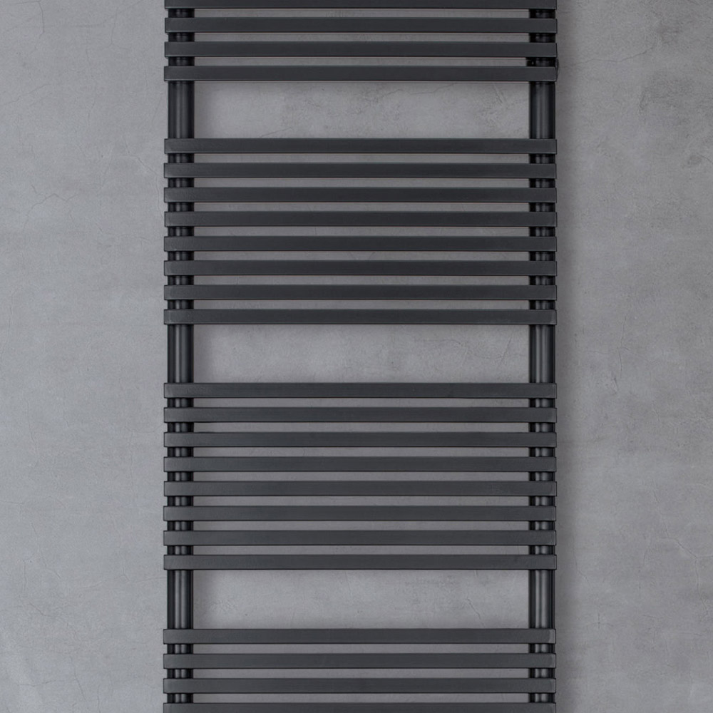 Elektrischer Handtuchwärmer aus Stahl mit tiefschwarzer Oberfläche, hergestellt in Italien – Brownies