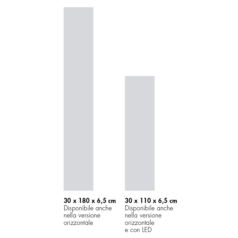 Dieses Möbelstück ist in zwei verschiedenen Größen erhältlich und eignet sich dazu, den Stil jeder Umgebung mit Design und Funktionalität zu vervollständigen. Es garantiert hohe Widerstandsfähigkeit , einfache Montage und Flexibilität bei der Einrichtung , da es in vertikalen und horizontalen Versionen mit drei Technologietypen (elektrisch, hydronisch und hybrid) und einer breiten Palette verschiedener Farbkombinationen erhältlich ist.