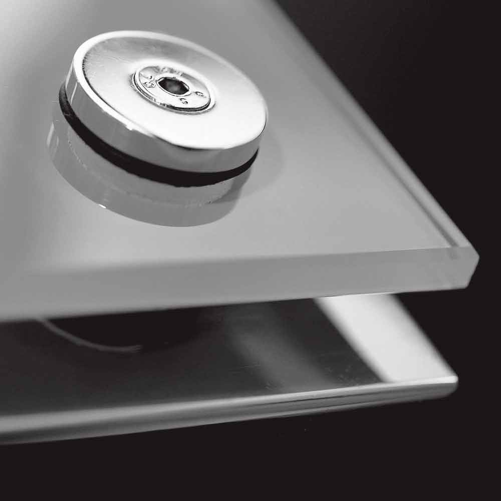 - Abdeckung : Platte aus flexiblem, gebördeltem Metallgewebe mit Profil aus poliertem Edelstahl