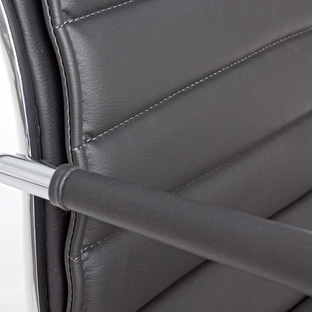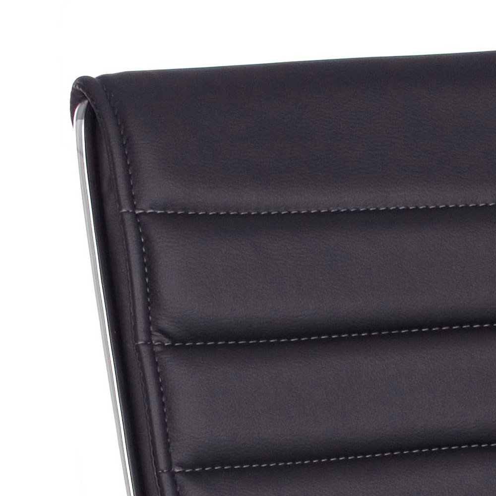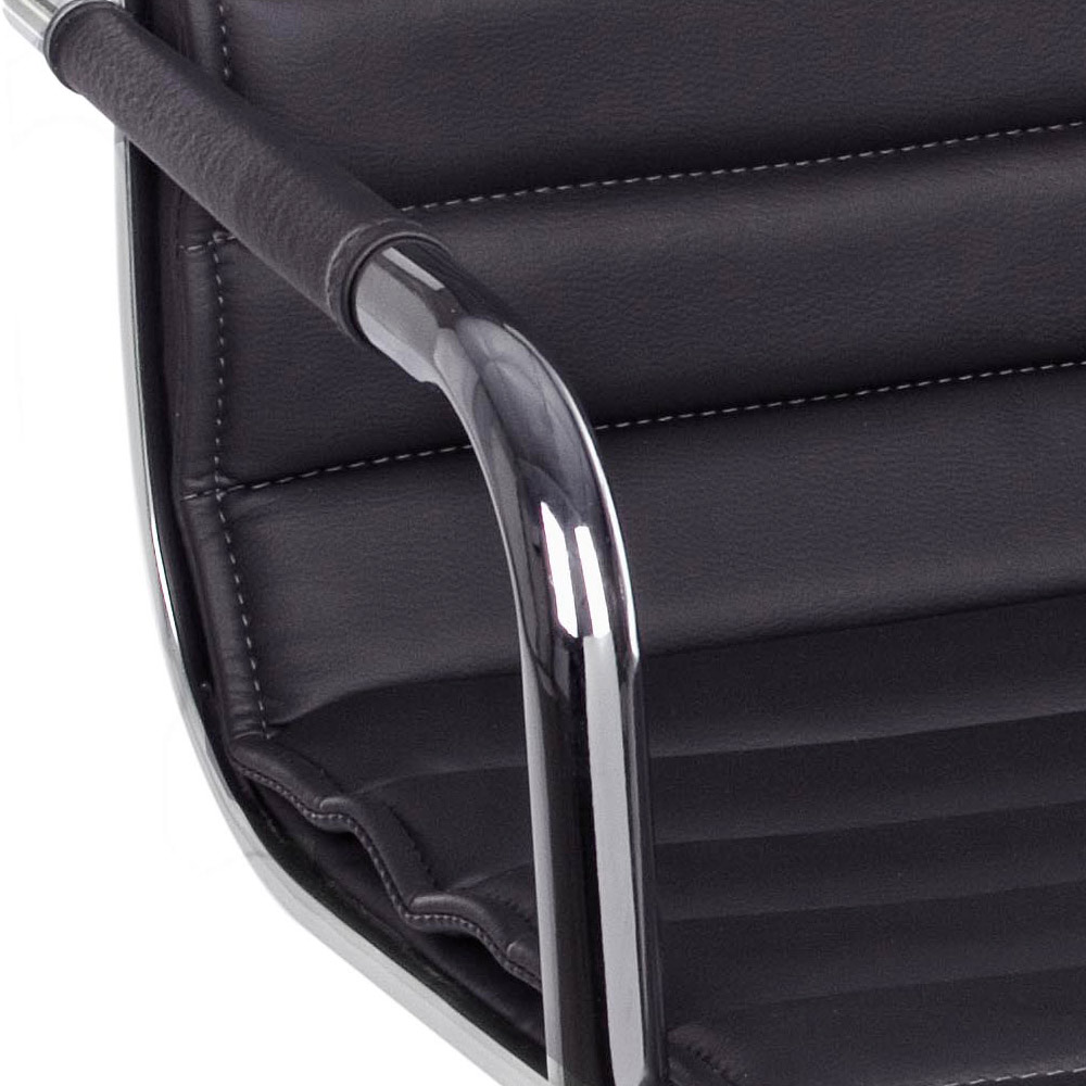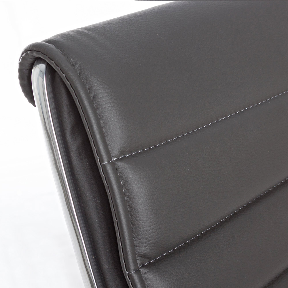 Armlehnen aus verchromtem Stahl verfügen über eine Kunstlederpolsterung für ultimative Eleganz.
