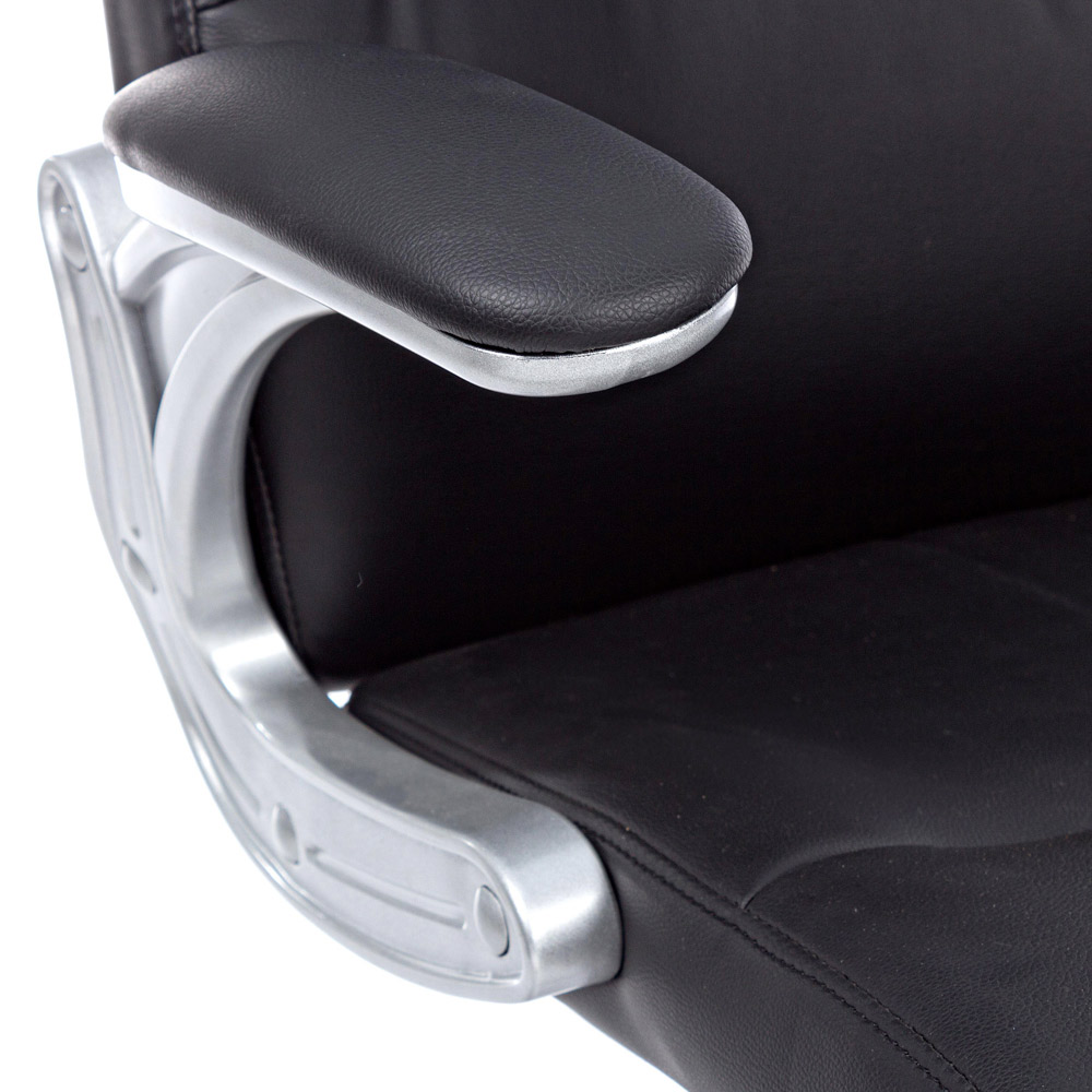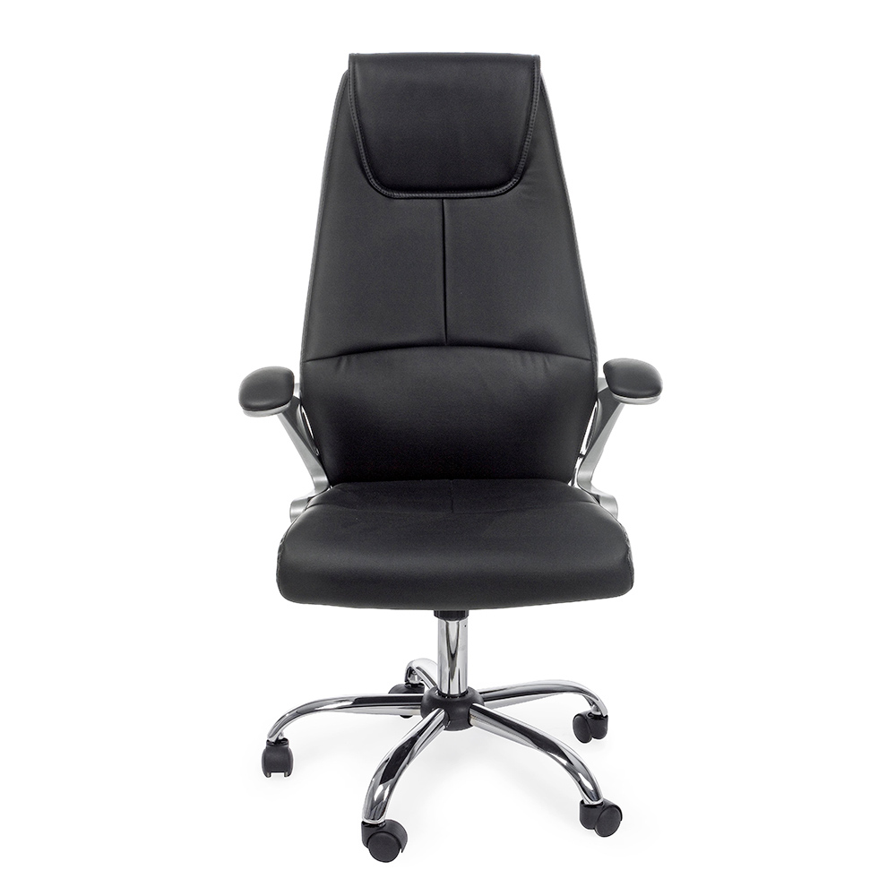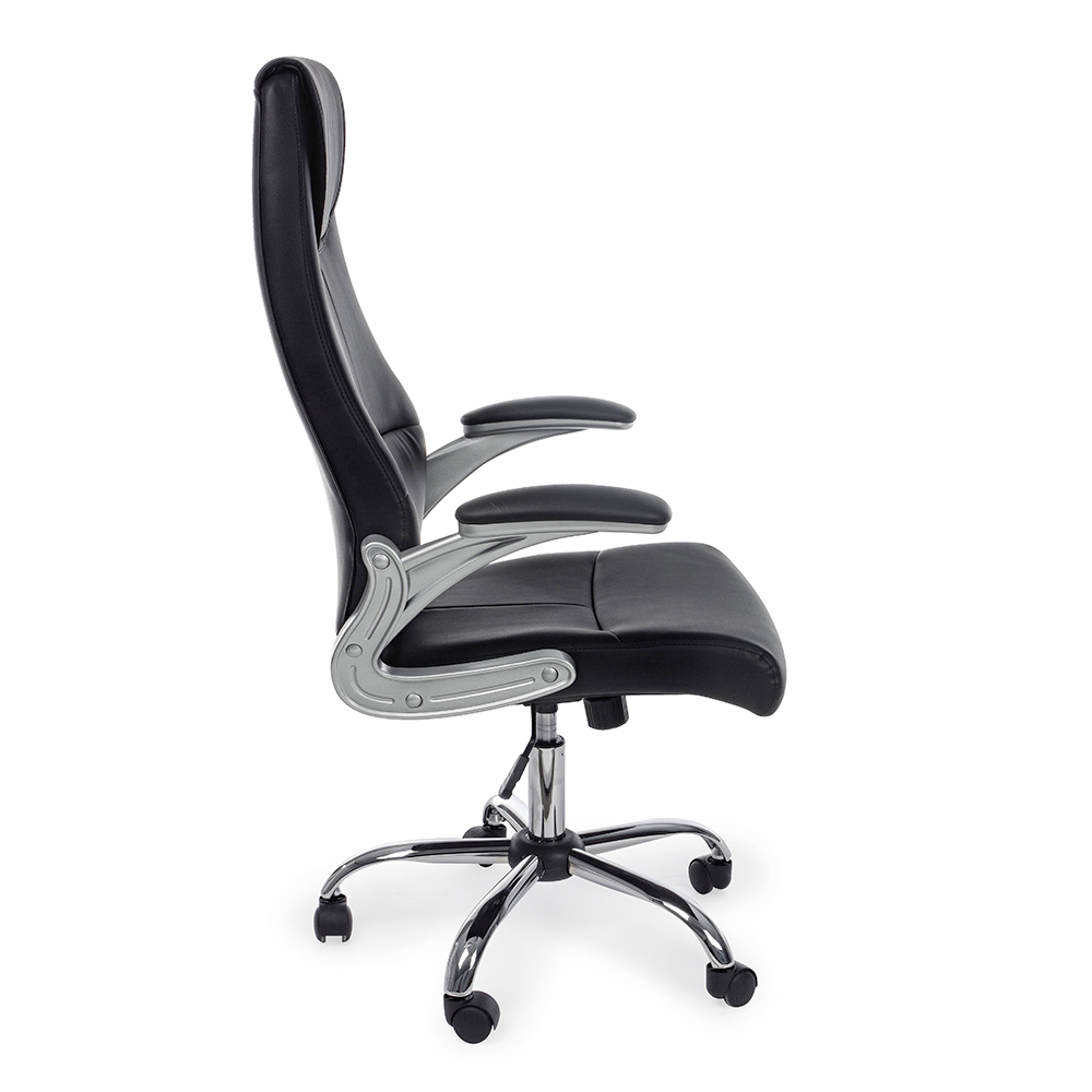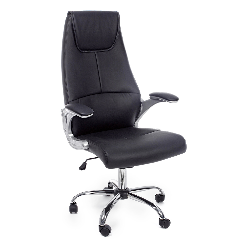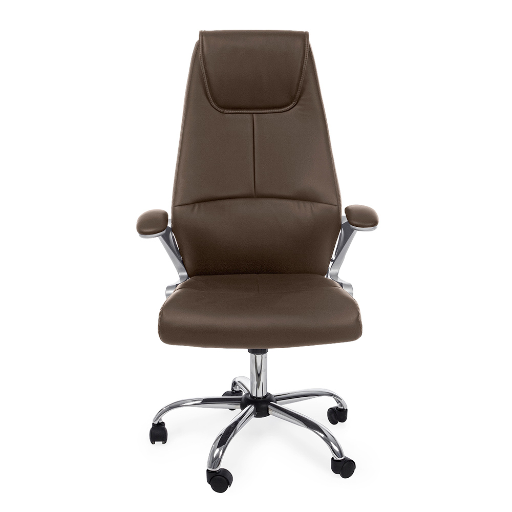 Ergonomischer Bürosessel aus Stahl mit Armlehnen und schwarzem oder braunem Kunstleder.