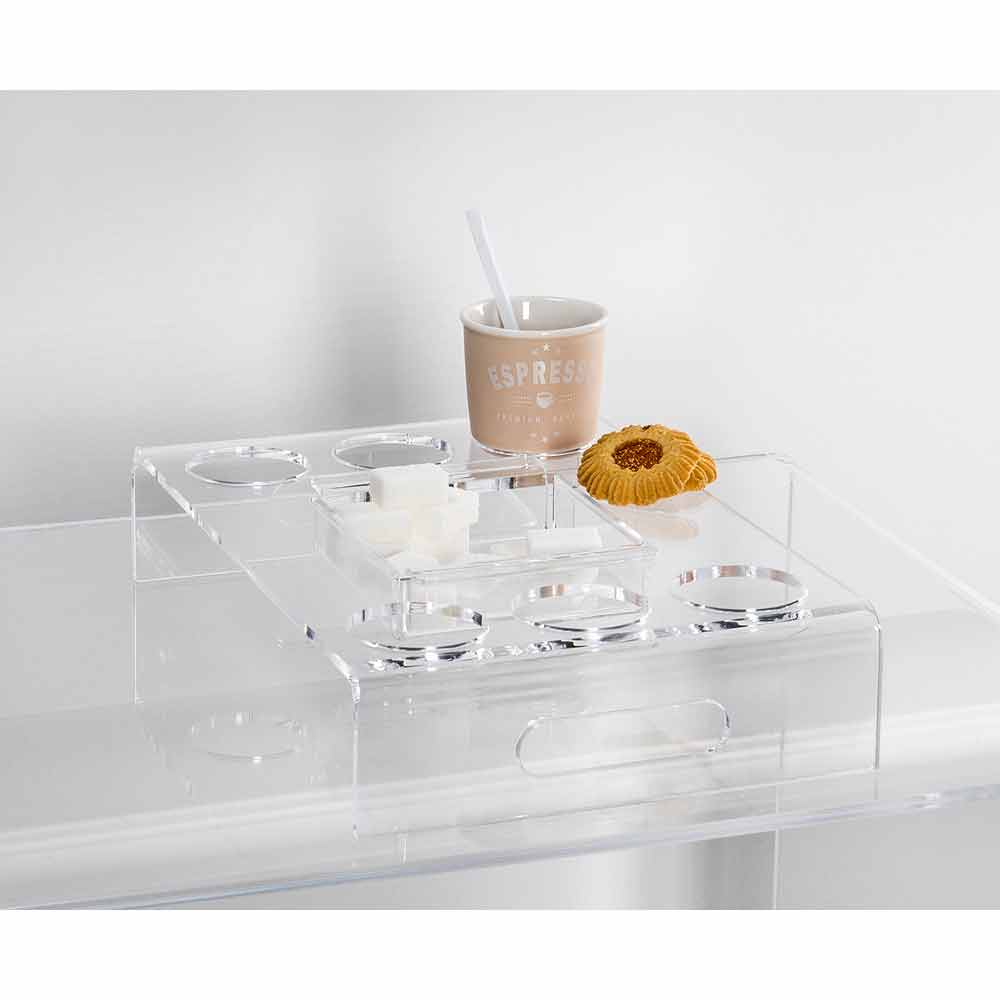 2 transparente Plexiglasschalen für Kaffee für 6 oder 8 Gläser, hergestellt in Italien Design.