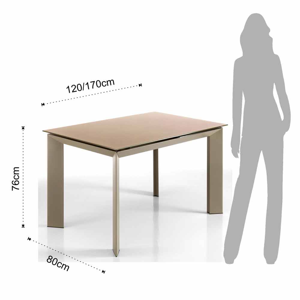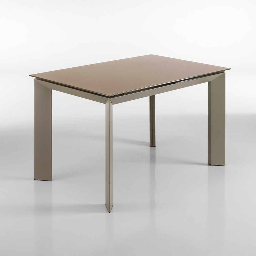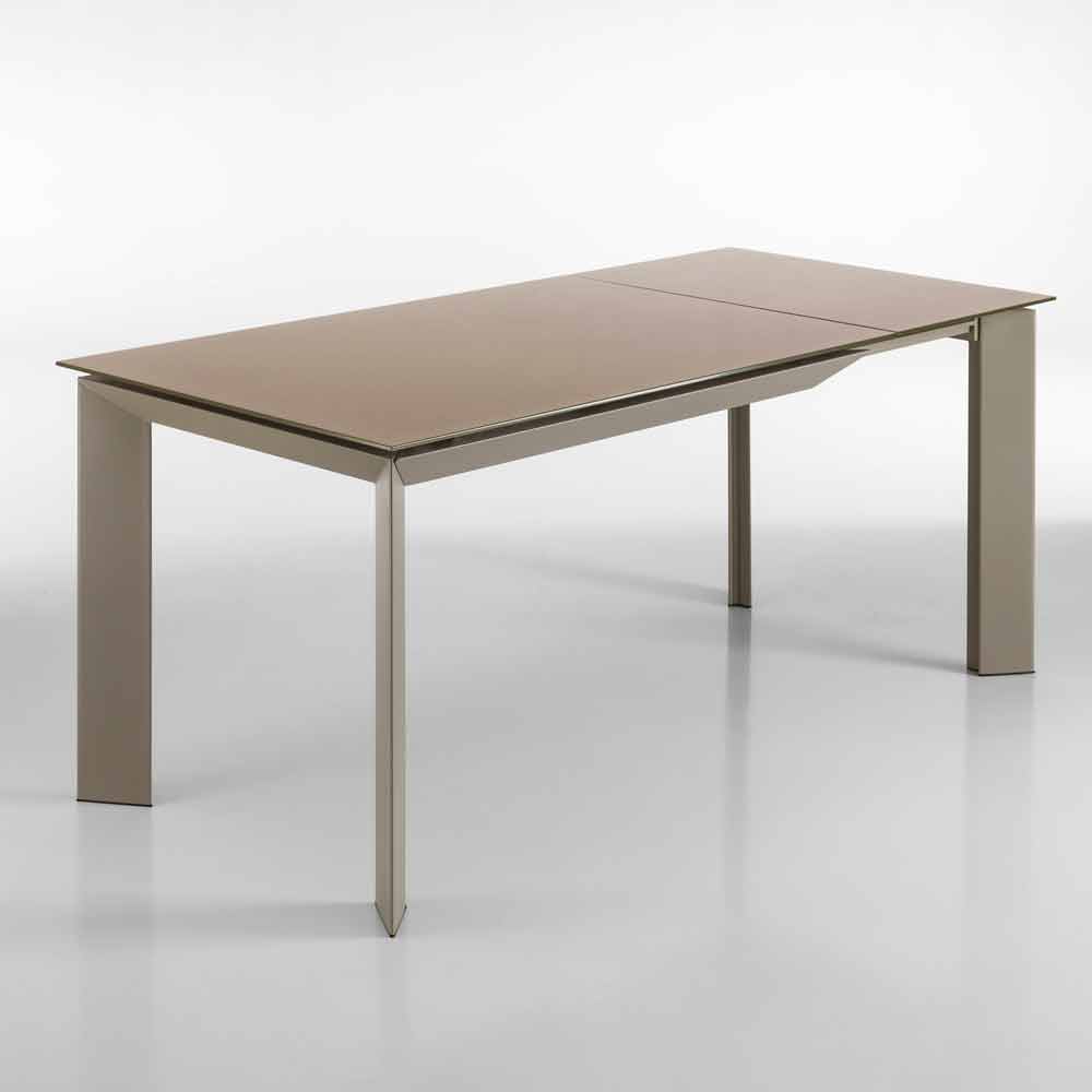 Erweiterbarer Tisch mit Zeno taupe lackiertem Hartglas