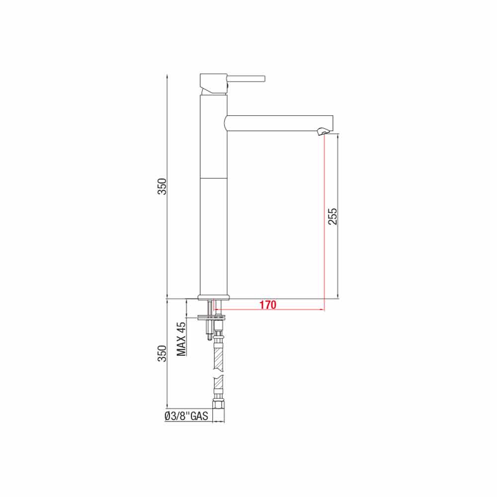 Maßnahme : H 255 mm (Gesamthöhe 350 mm)