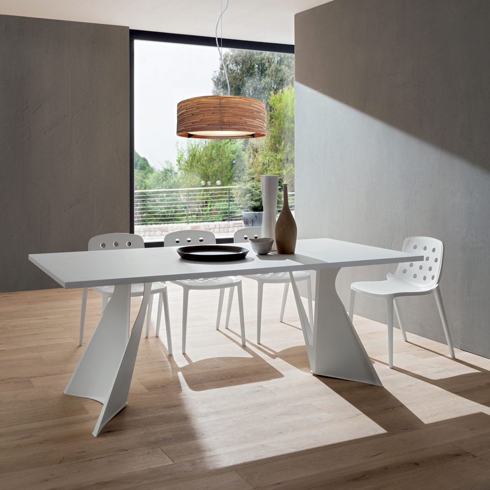 imposanten und majestätischen Design . Diese Eigenschaft bereichert seine Ästhetik zusammen mit der ungewöhnlichen Form der beiden Beine, die dem Tisch ein fast futuristisches Aussehen verleihen, und macht ihn besonders geeignet für diejenigen, die es lieben, ihre Räume mit Elementen mit