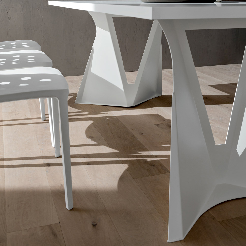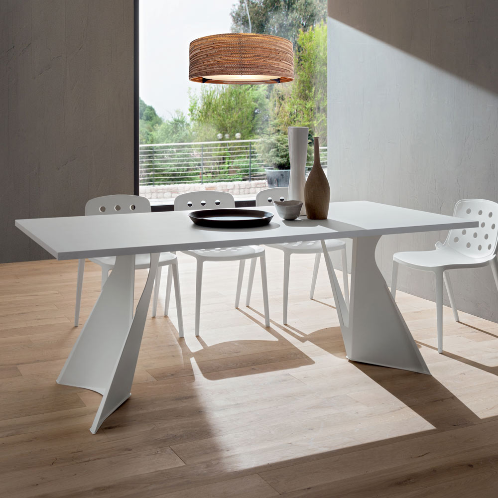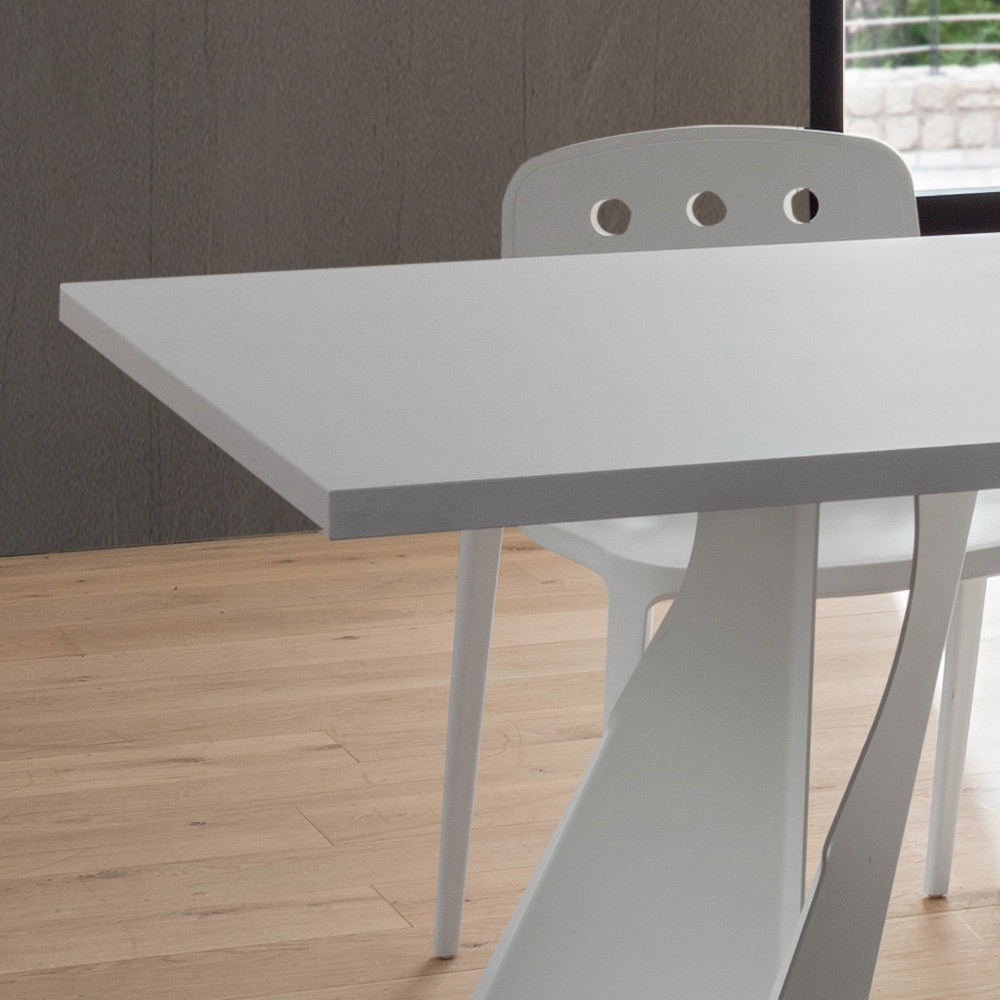 Metall, das in der gleichen Farbe wie die Platte lackiert ist . Die Verwendung von Fenix für die Konstruktion der Tischplatte bietet dem Tisch seine ganze Funktionalität, da es ein Material darstellt, das durch die Verwendung
