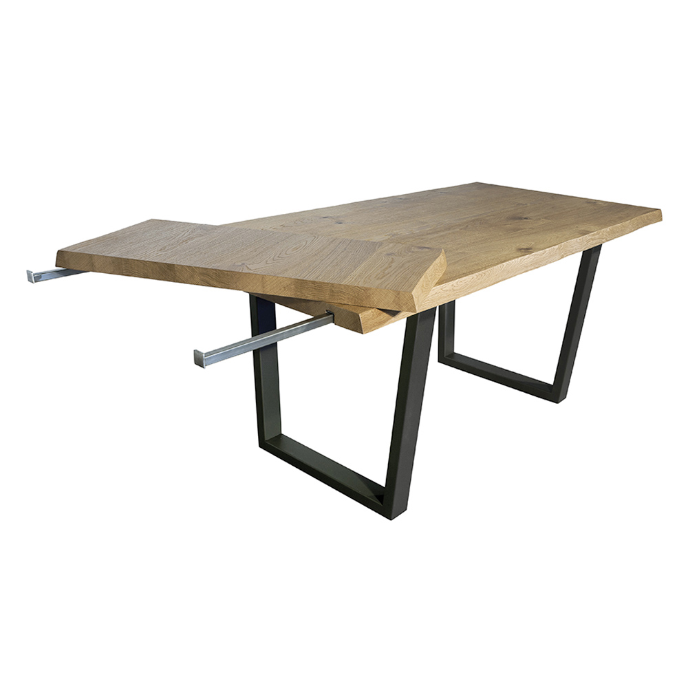Die Platte dieses Tisches ist mit scotchfarbener massiver Asteiche furniert und sein Untergestell ist aus eisengrauem Metall. Dieser Tisch wurde mit Sorgfalt und Leidenschaft geschaffen, um die Einzigartigkeit und Kraft der Natur zu feiern, hergestellt von erfahrenen italienischen Handwerkern im Bereich Made in Italy .