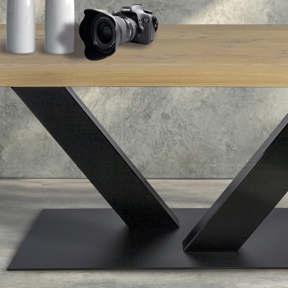 Esstisch aus furnierter, plattierter Eiche und Metall Made in Italy - Riad