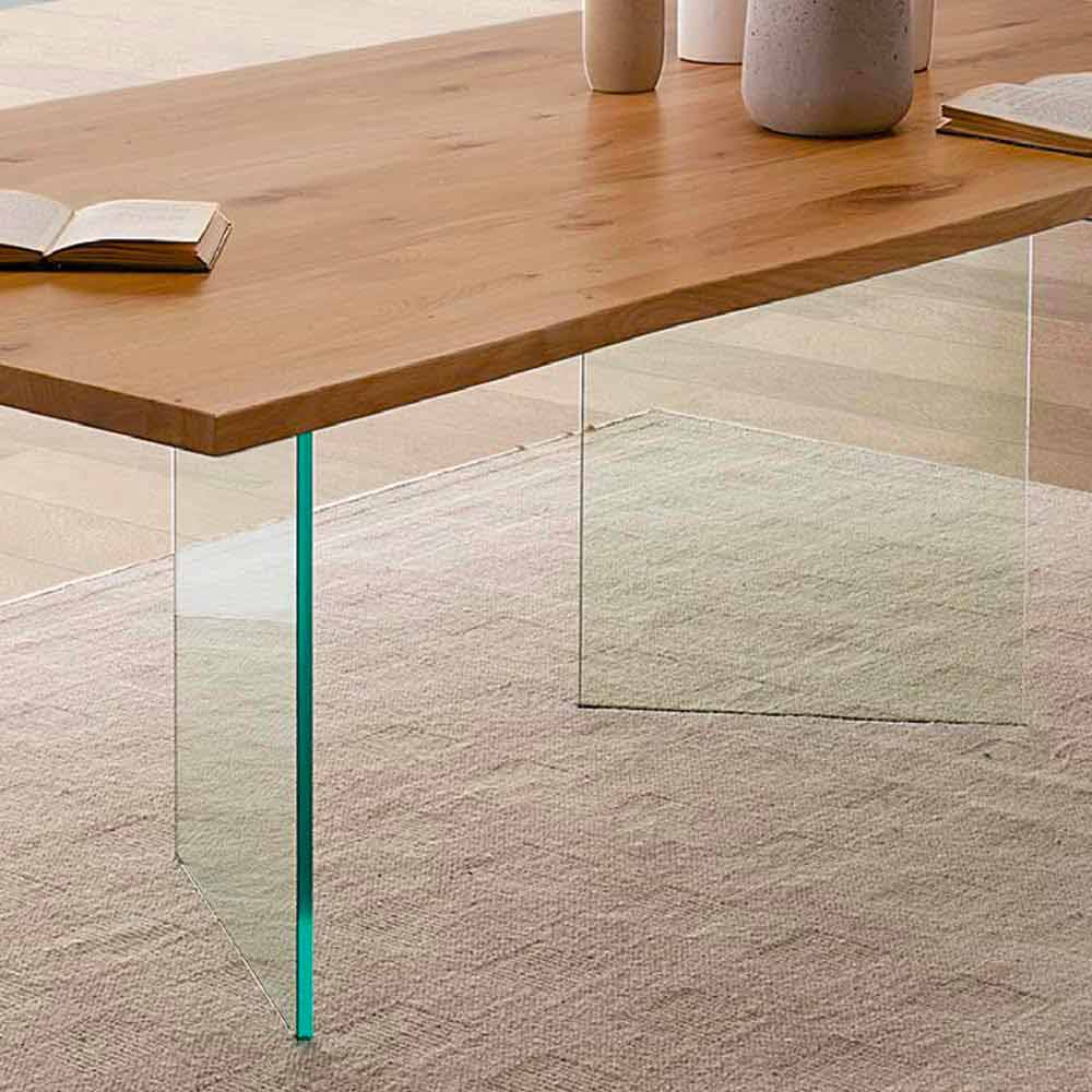 Moderner Esstisch aus Glas und Holz, hochwertiges Produkt Made in Italy.