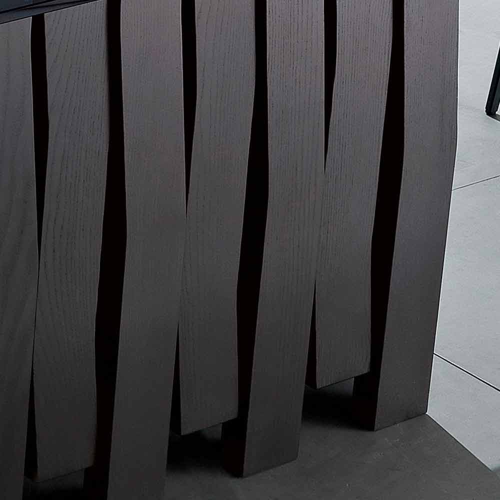 Egisto ist ein origineller fester Tisch , der in Italien mit einer Oberfläche aus gehärtetem Glas (Dicke 12 mm) und massiver Eschenholzbasis.
