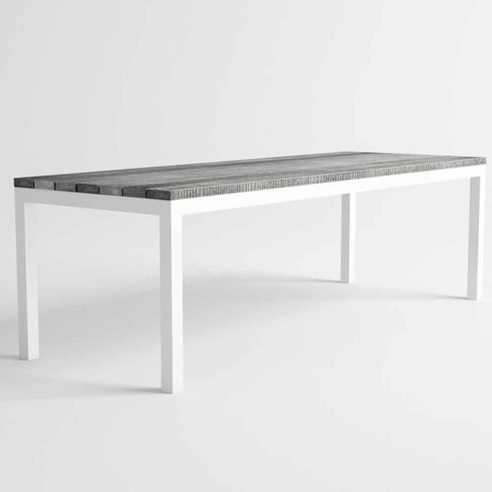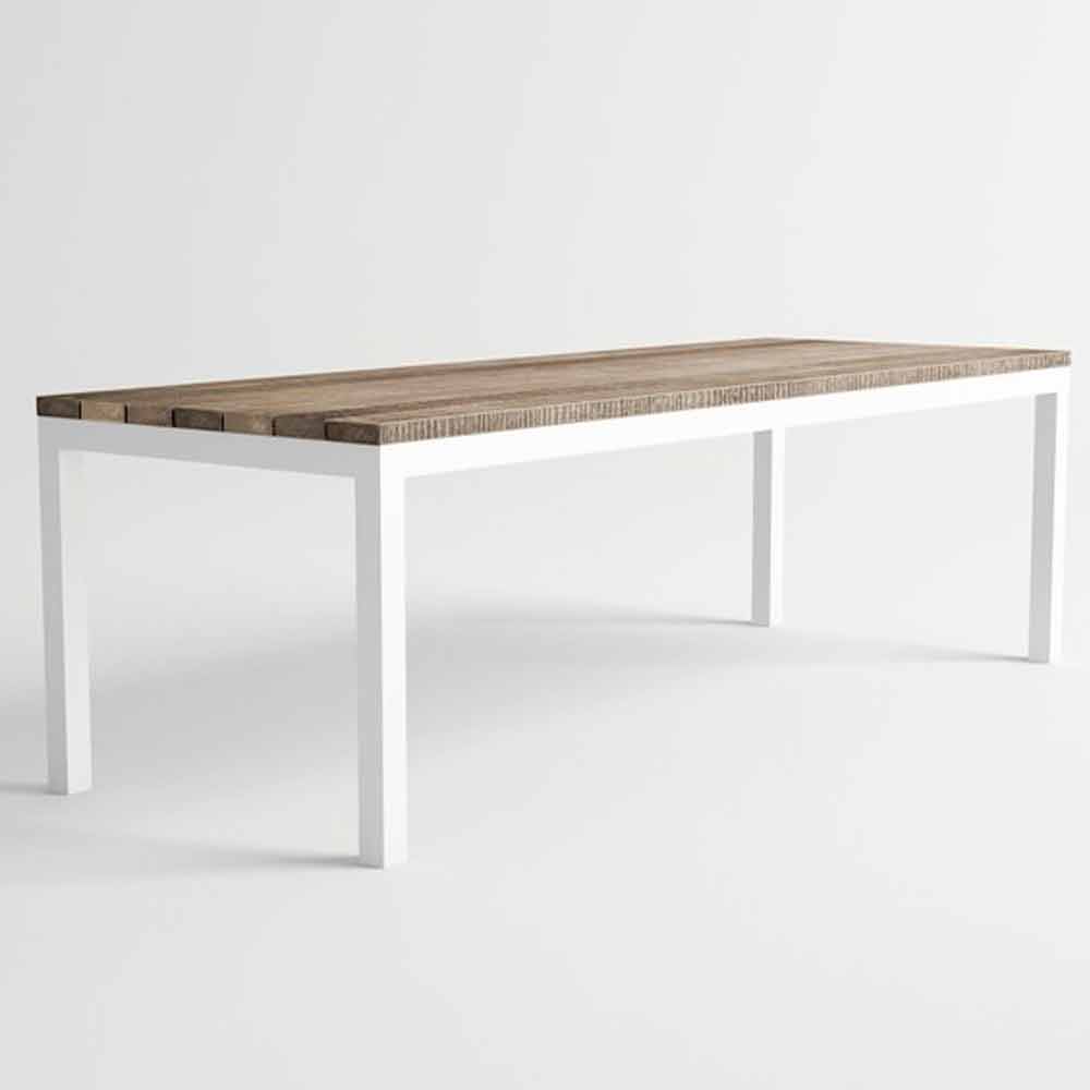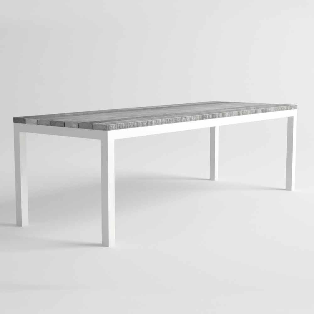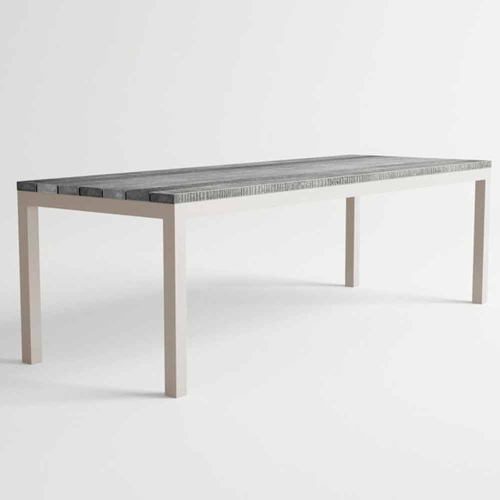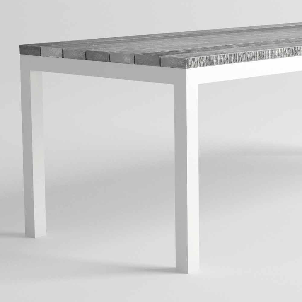 Gartentisch mit modernem Design, Aluminium- und Holzstruktur, in verschiedenen Farben erhältlich.