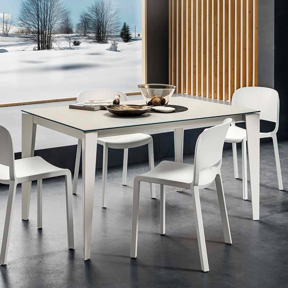 Küchentisch aus Laminat mit Gestell aus lackiertem Metall Made in Italy.