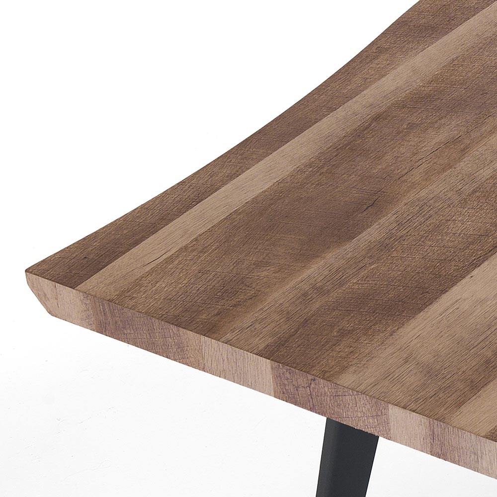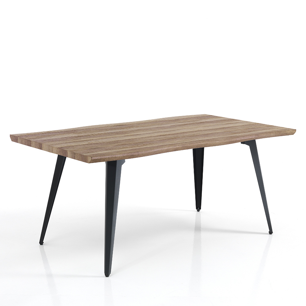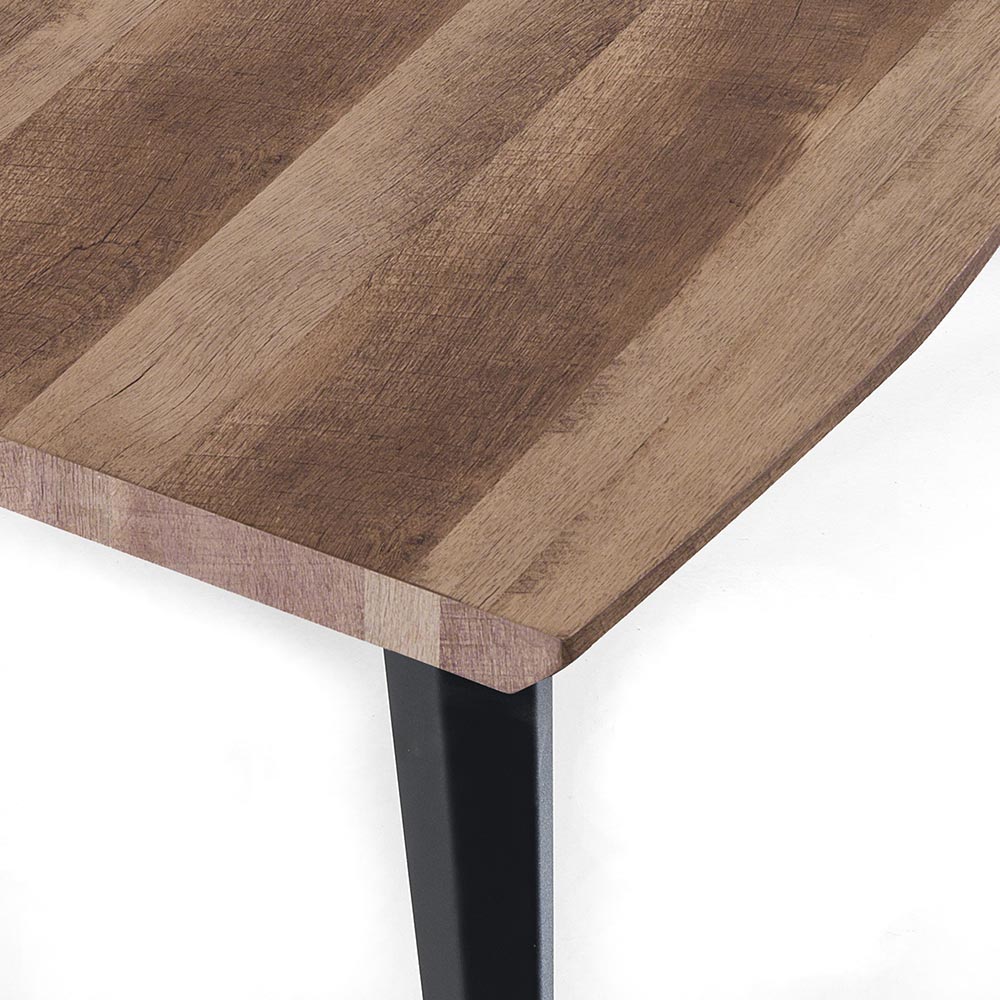 Esstisch mit MDF-Platte und schwarzen Stahlbeinen.