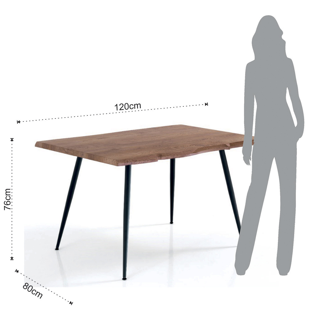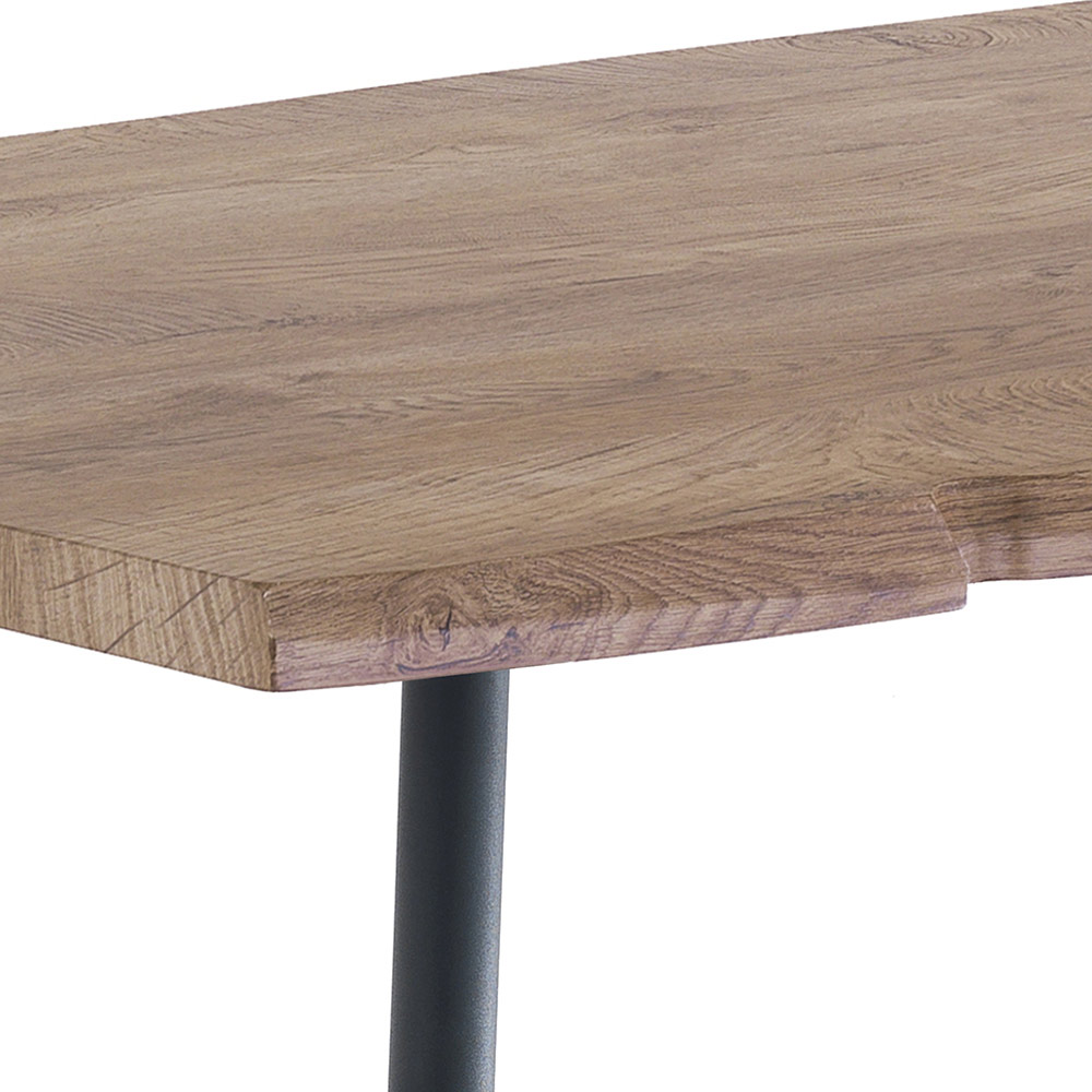 Esstisch mit MDF- Platte mit Melaminbeschichtung in Eichenoptik (Stärke 3,3 cm) und Beinen mit verstellbarem Fuß aus mattschwarz lackiertem Stahl . Ein minimalistisches und modernes Design, das entwickelt wurde, um jeden Wohnraum auf wesentliche Weise einzurichten und Funktionalität und Eleganz mit sich zu bringen . Die Kombination der ausgewählten Oberflächen und Materialien bereichert das Produkt mit Persönlichkeit und ermöglicht es, Solidität, Stabilität und ausgezeichnete Haltbarkeit zu gewährleisten. Das Ergebnis ist daher ein avantgardistischer Esstisch, der sich durch eine ausgeprägte Vielseitigkeit der Verwendung auszeichnet und jede Wohn- oder Objektsituation mit Persönlichkeit abrunden kann.