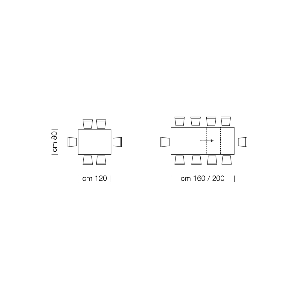 • L 120 (160) x T 80 x H 75 cm 8 Sitze erweiterbar mit einer internen 40-cm-Verlängerung;