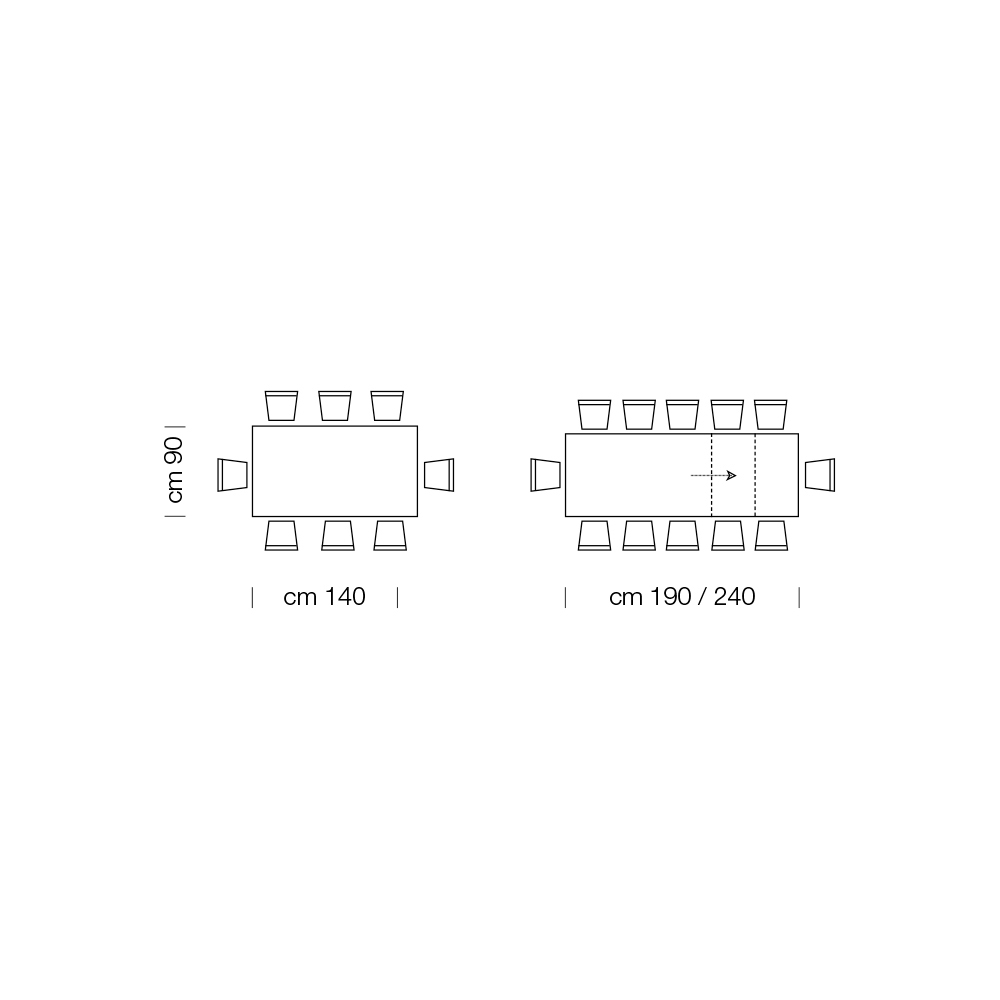 • L 140 (240) x T 90 x H 75 cm. 12-Sitzer ausziehbar mit zwei internen Verlängerungen von jeweils 50 cm;