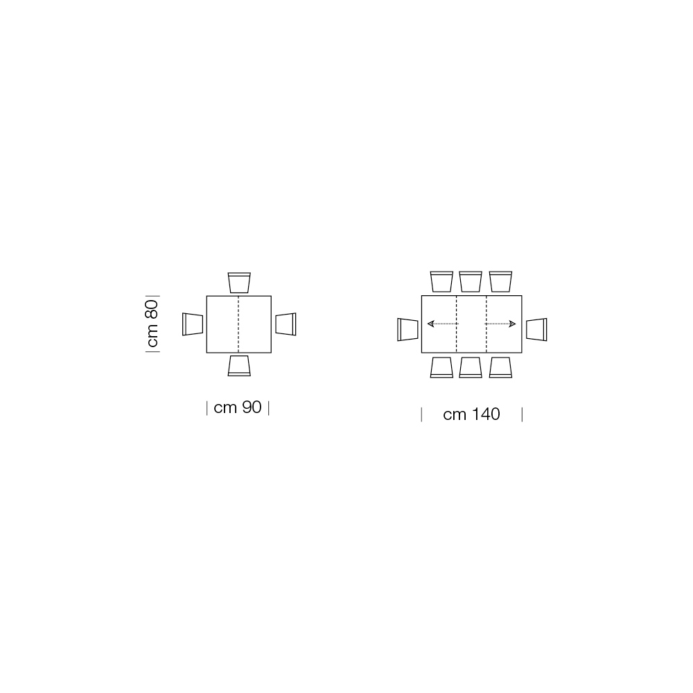 Maßnahmen- L 90 (140) x T 80 x H 77 cm 8 Sitze erweiterbar mit einer internen 50-cm-Verlängerung;
