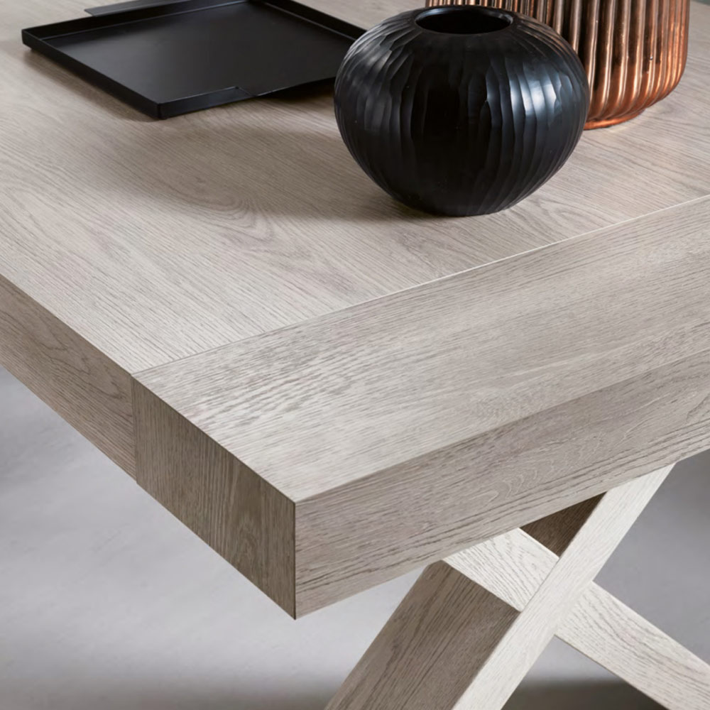 imposanten Stil , der auch dank seiner Größe die Hauptrolle im Raum einnehmen kann. Seine Ästhetik wird bereichert und einzigartig gemacht durch die besondere gekreuzte Form des Sockels, die dem Produkt