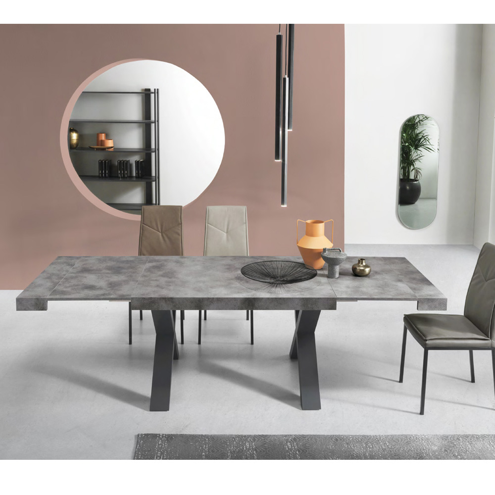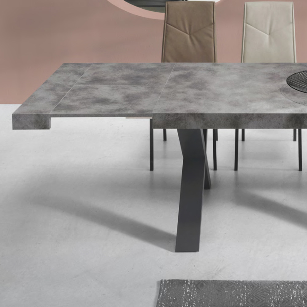 Ausziehbarer Esstisch aus Laminat in Betonoptik Made in Italy.