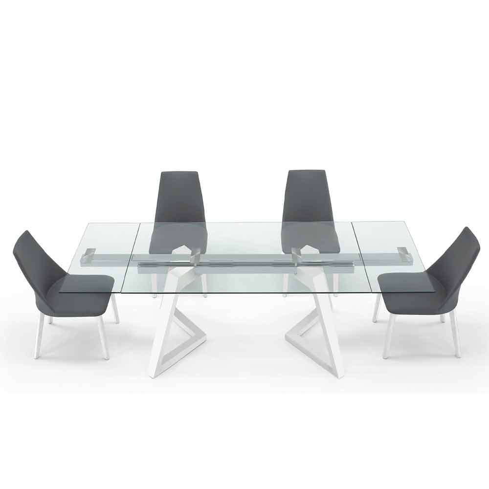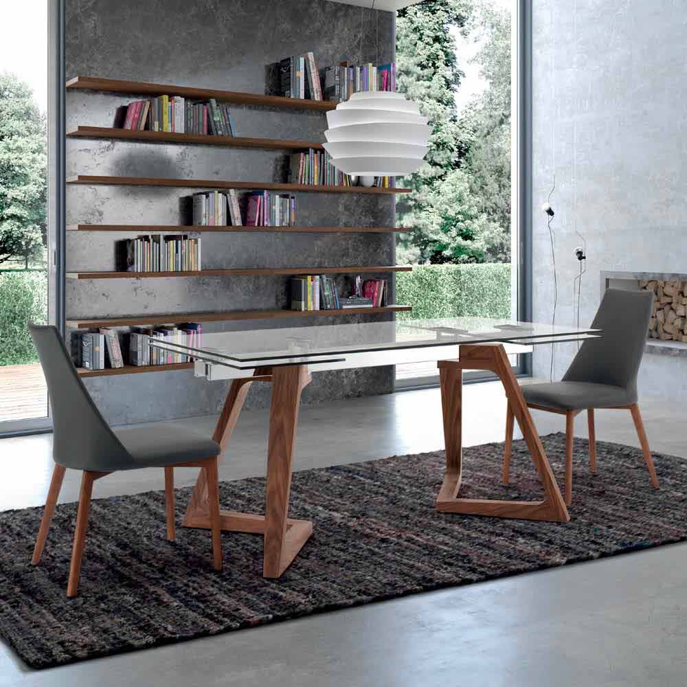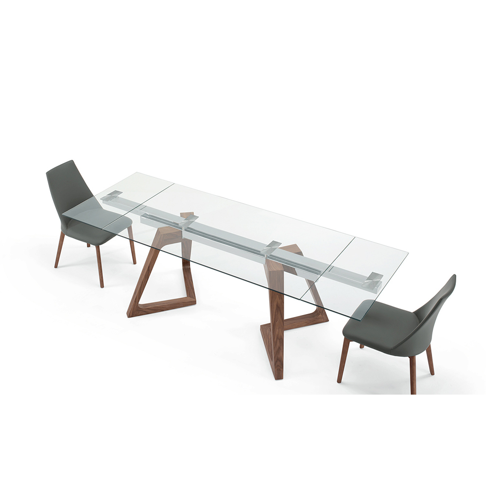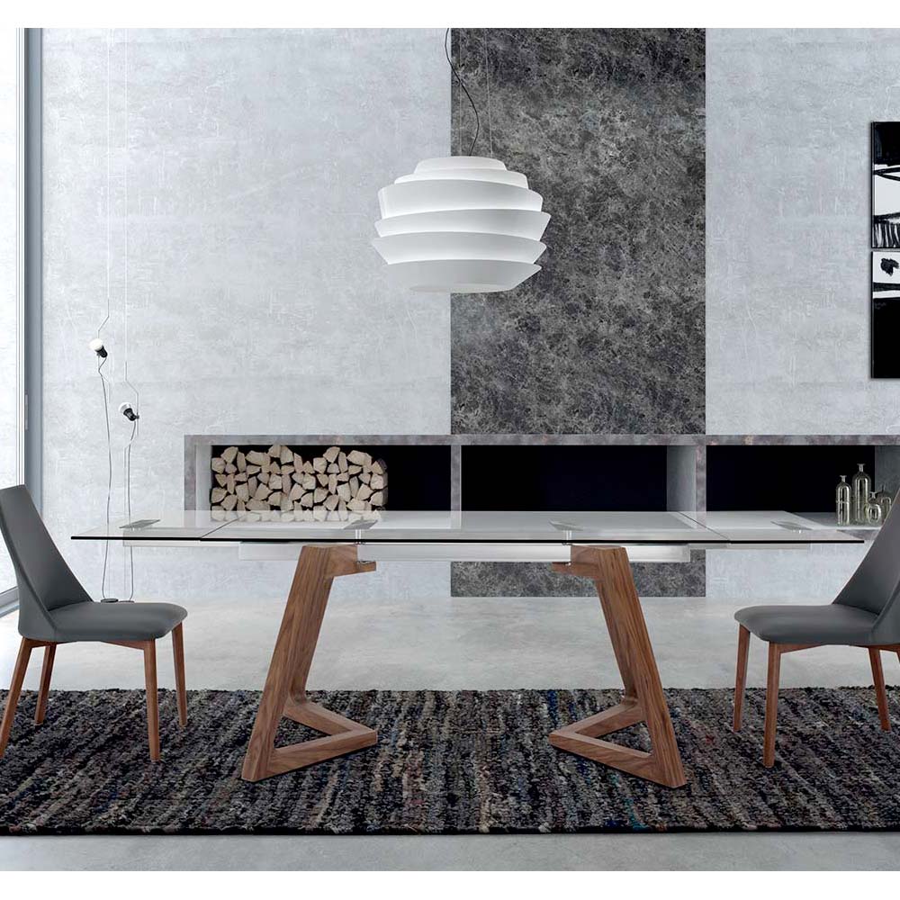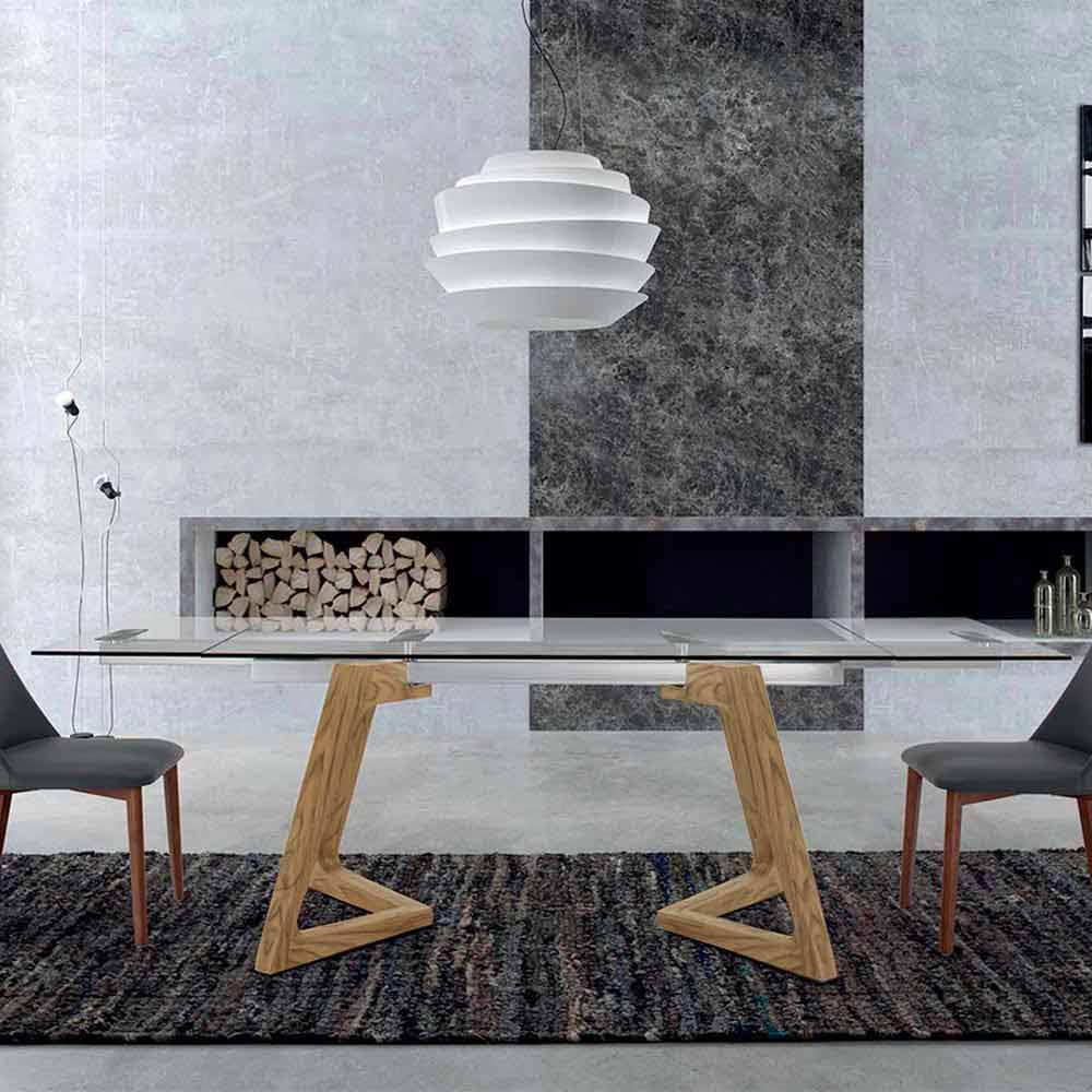 Ausziehbarer Tisch bis 280 cm aus Glas und furniertem Holz – Eugrafo