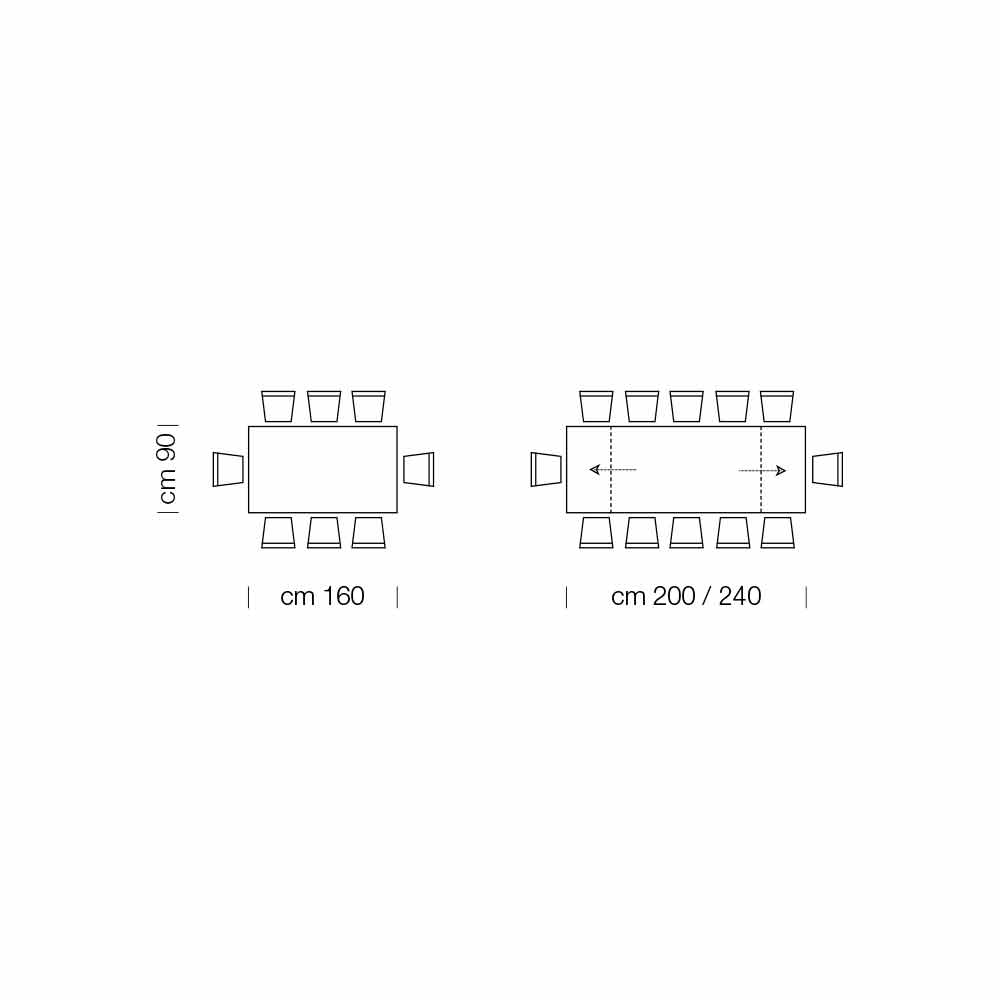 • L 160 (240) x T 90 x H 77 cm (8/12 Sitzplätze);