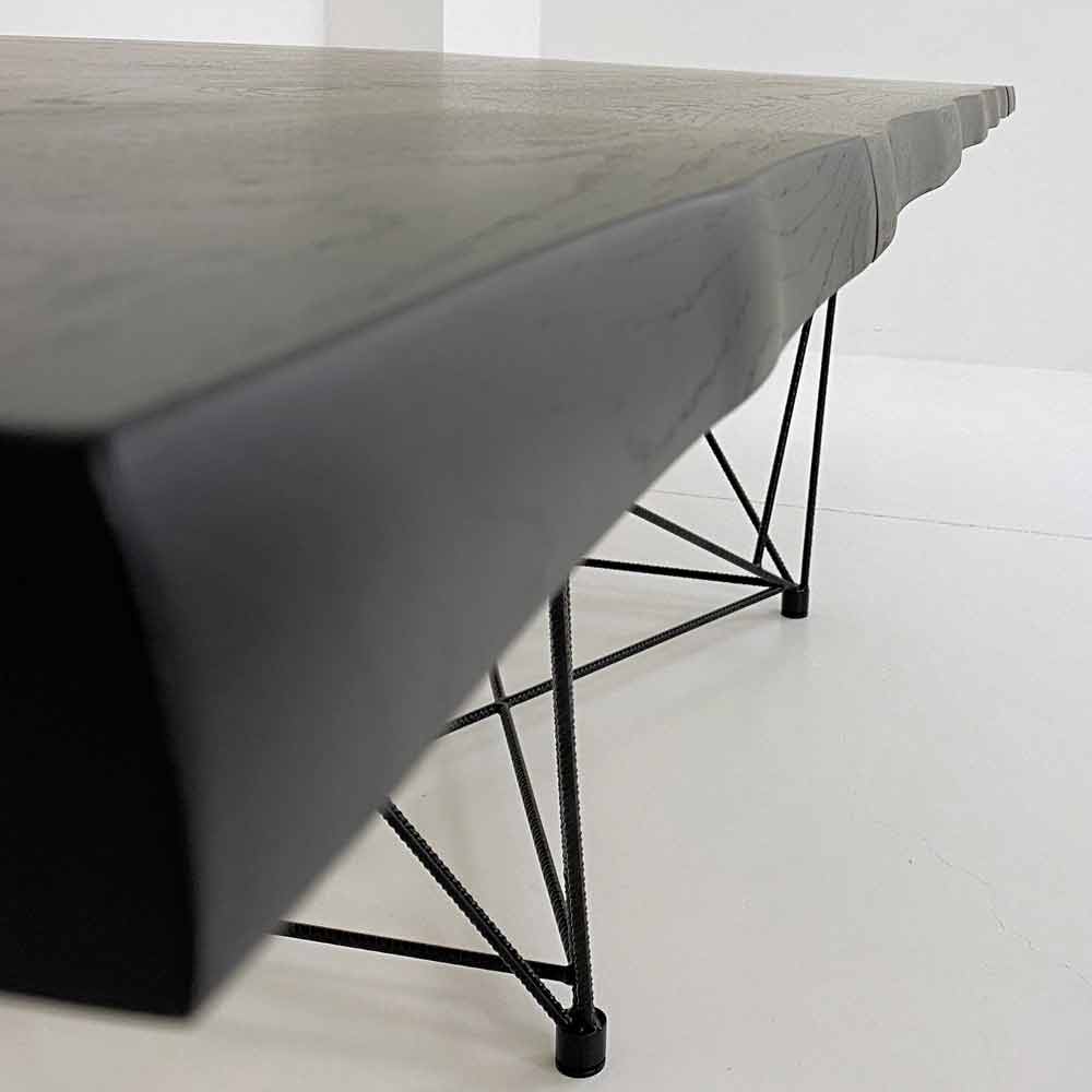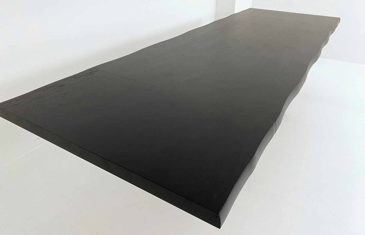 - Tischplatte aus fossilem Carbon-Eichenfurnier – Stärke 50 mm.
