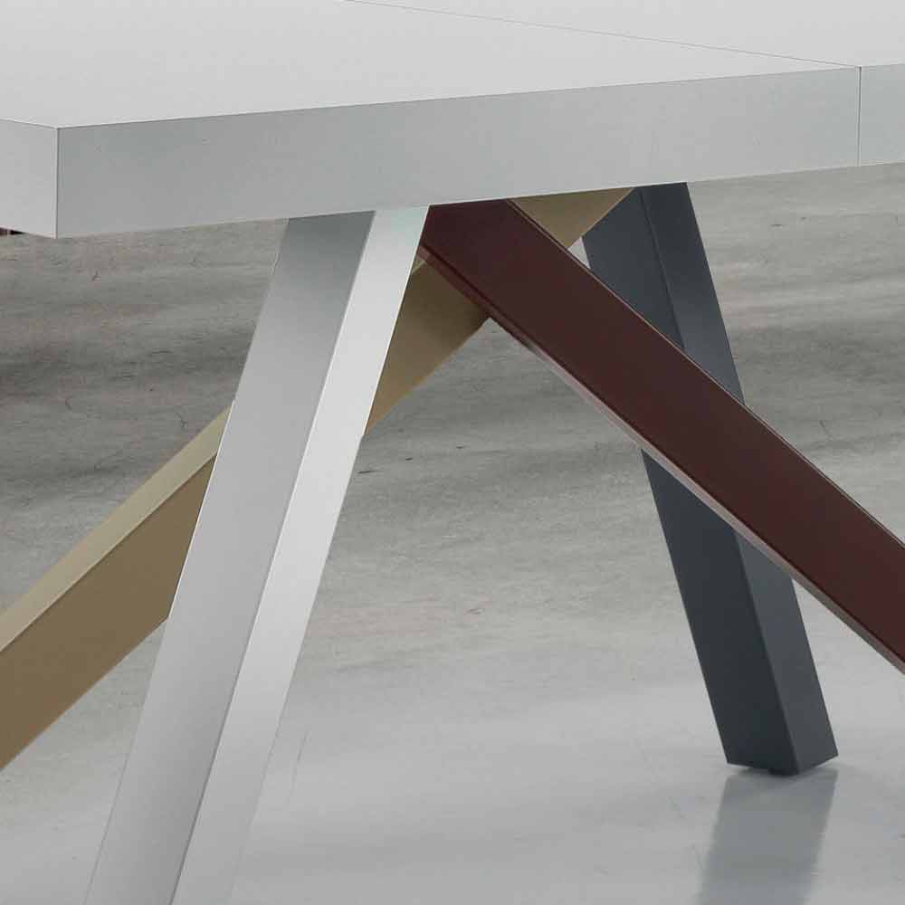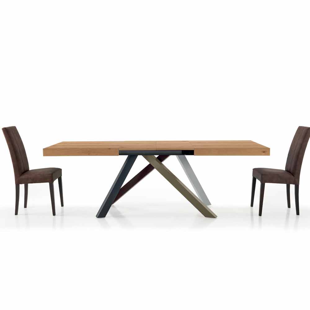 Ausziehbarer Esstisch bis 450 cm mit Schichtholzplatte und Stahlgestell, hergestellt in Italien.