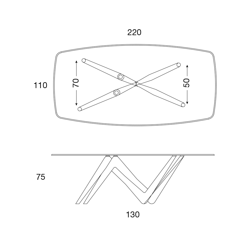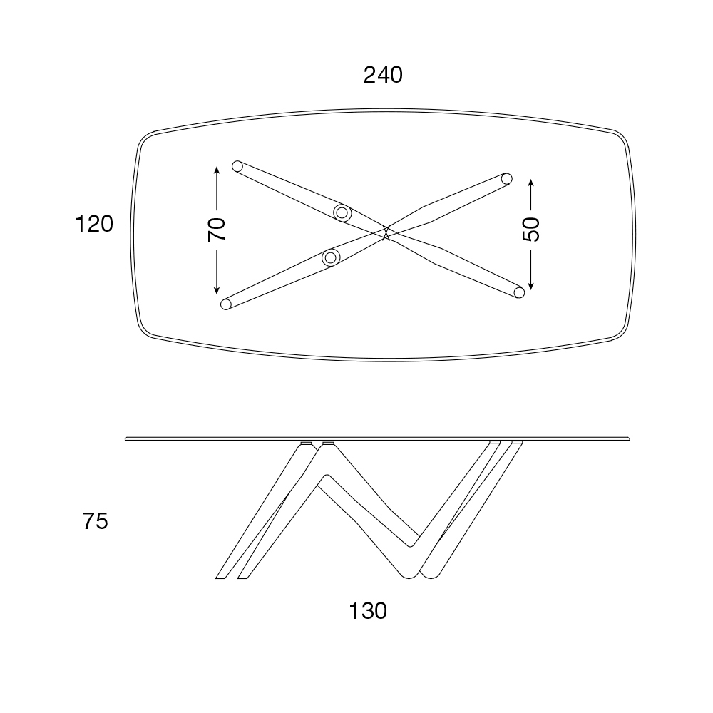 - L 240 x T 120 x H 75 cm