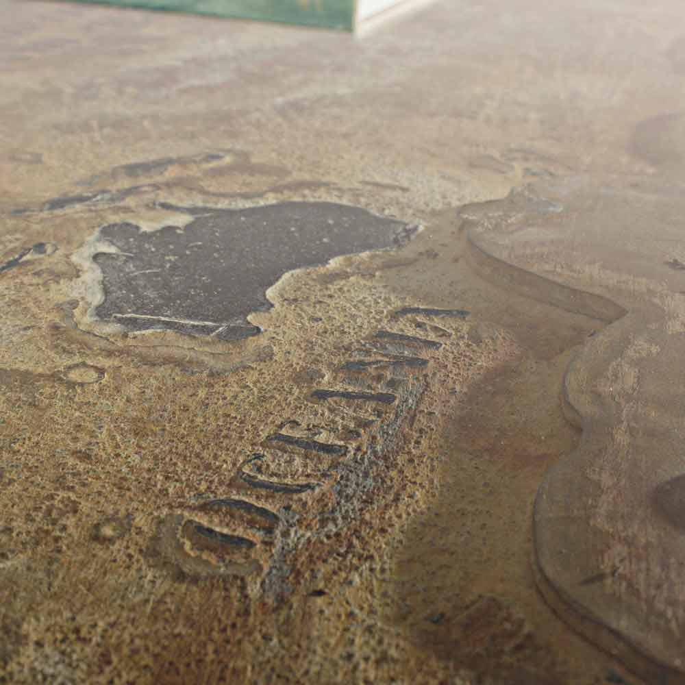 Tisch aus plattierter Eiche mit eckiger Blattkante und Metall Made in Italy - Riad