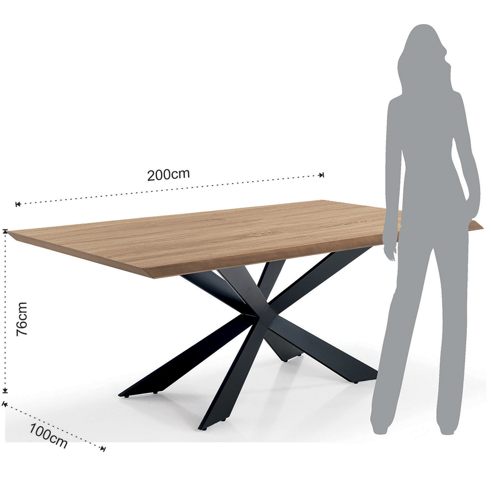 Esstisch aus mdf mit Eichenfinish und schwarz lackiertem Metall.