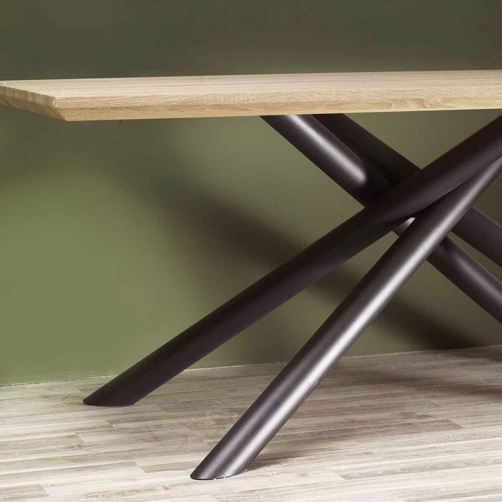 Dieser zeitgenössische Designtisch ist die perfekte Kombination aus Eleganz und Funktionalität. Das schwarz pulverbeschichtete Metallgestell sorgt für eine robuste und stabile Basis, verstärkt durch die geometrischen Linien der gekreuzten Beine, die dem Tisch einen Hauch von raffiniertem Industriestil verleihen.