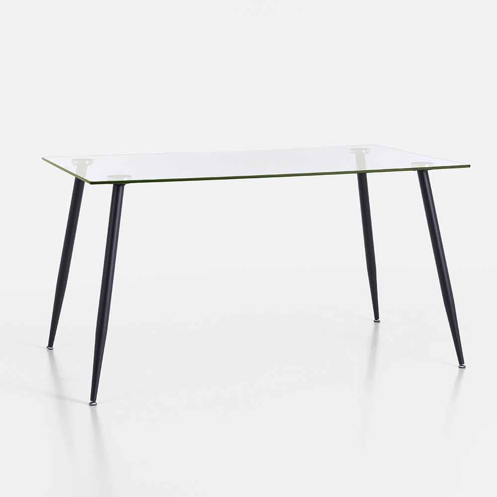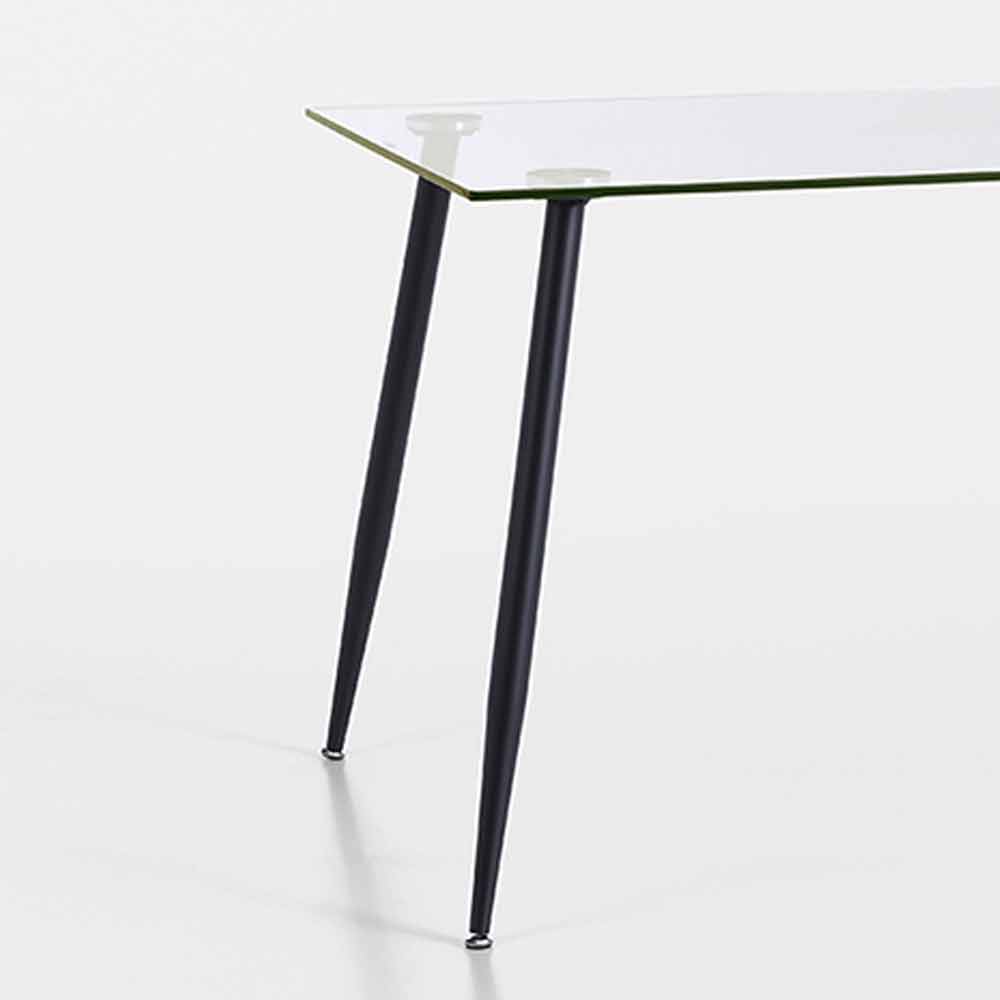 Wohnzimmertisch im modernen Design mit Platte aus gehärtetem Glas und mattschwarz lackiertem Metallgestell.
