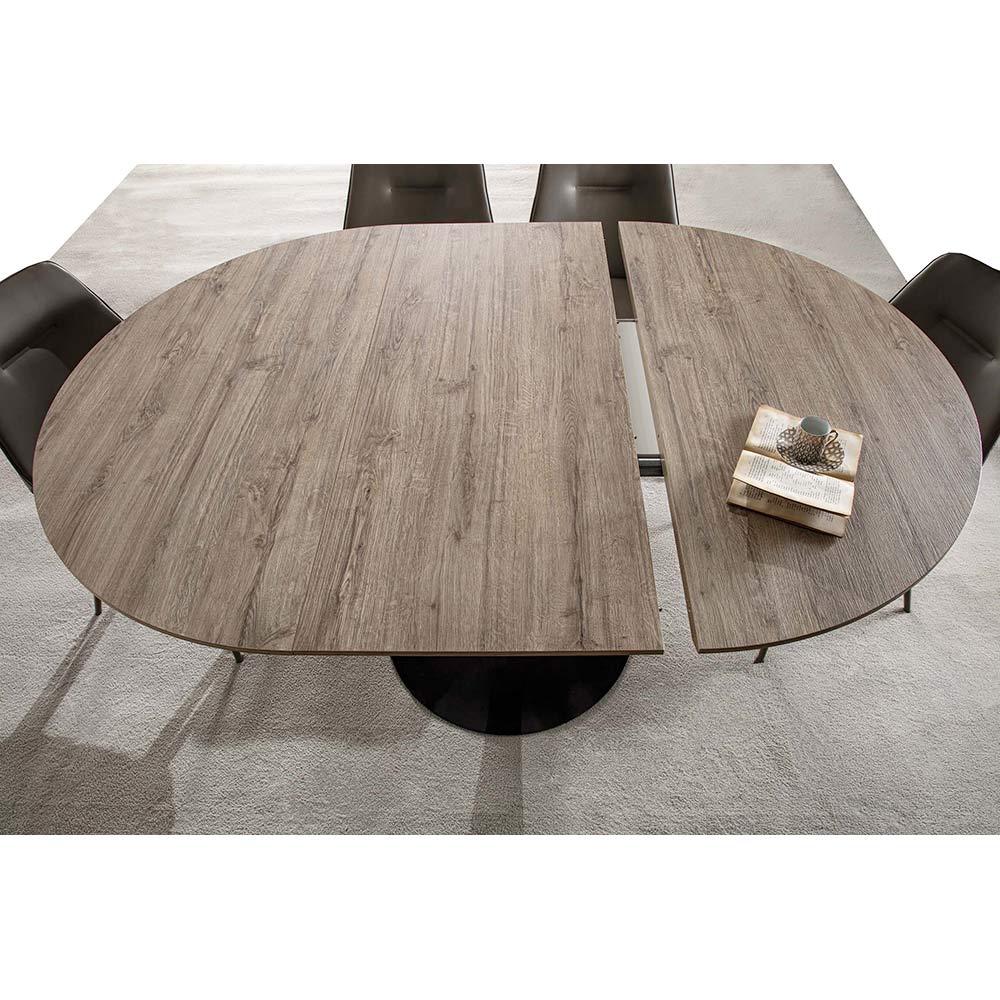 Runder ausziehbarer Esstisch mit Platte in strukturierter Eiche.