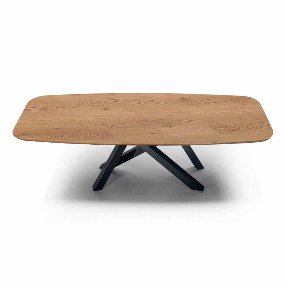 Esstisch mit tonnenförmiger Platte aus luxuriösem HPL-Laminat Made in Italy.