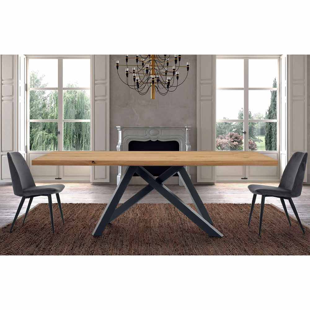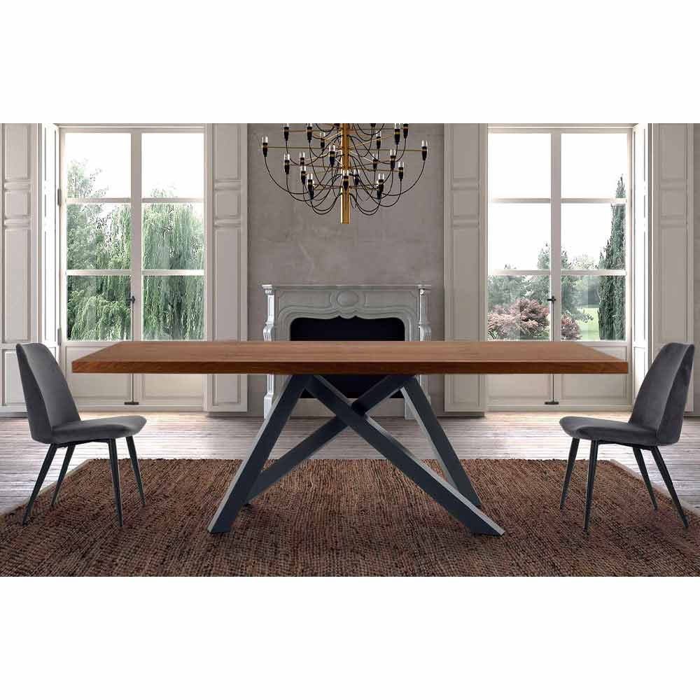 Luxuriöser Esstisch Made in Italy aus furniertem Holz und lackiertem Stahl.