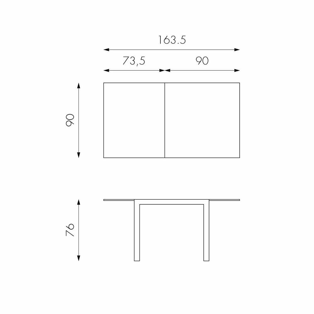 Ausziehbarer Esstisch mit Teo-Glasplatte.