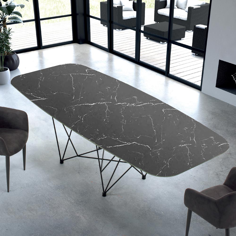 schwarz lackierten Stahlsockel. Erhältlich in verschiedenen Größen und Ausführungen für die Tischplatte: