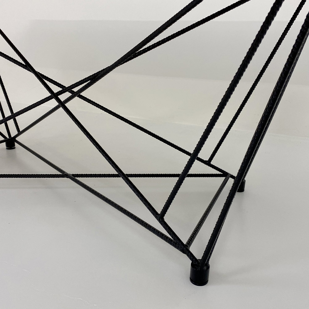 Tonnenförmiger Tisch mit Keramikplatte und schwarzem Stahlgestell, hergestellt in Italien.