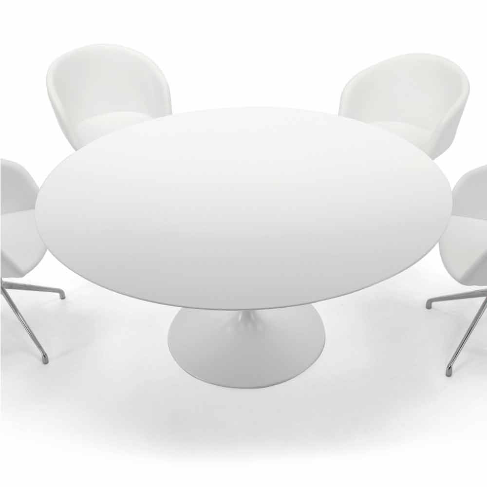 Der moderne runde Tisch Dollars drückt eine starke Persönlichkeit aus und eignet sich perfekt für Einrichtungsgegenstände mit unterschiedlichen stilistischen Bezügen. Handgefertigt in Italien mit hochwertigen Materialien und 100 % Made in Italy. Gekennzeichnet durch eine lackierte Oberfläche aus flüssigem Laminat(Dicke 25 mm)und einem Sockel aus Aluminiumguss, lackiert in glänzendem Weiß oder glänzendem Schwarz.