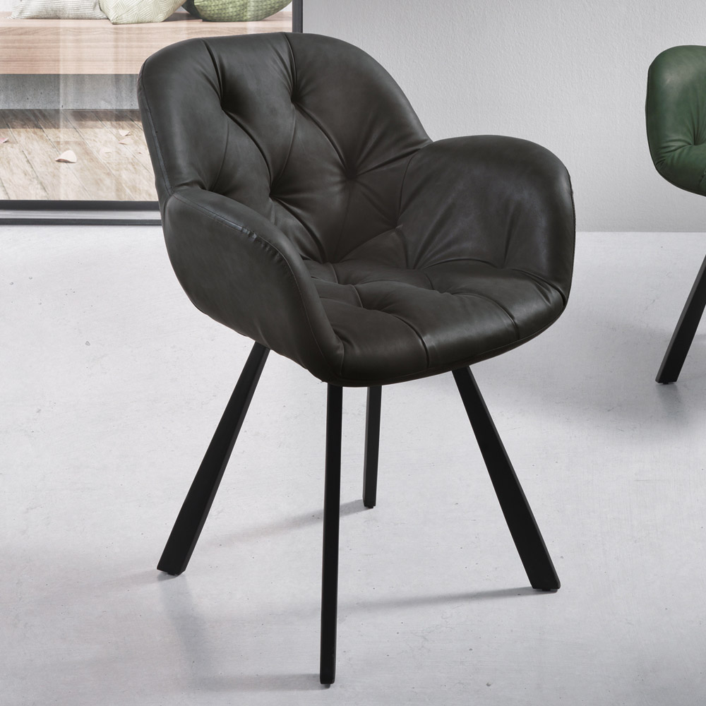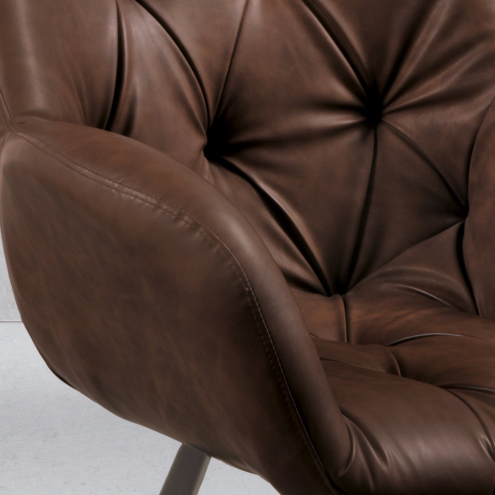 Wohnzimmerstuhl mit lackierter Metallstruktur und Kunstledersitz.