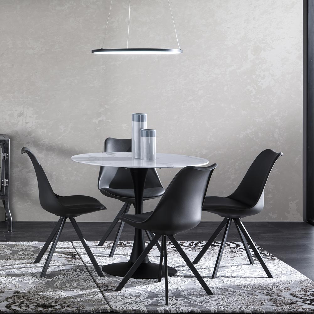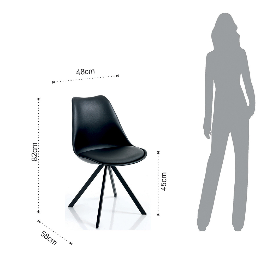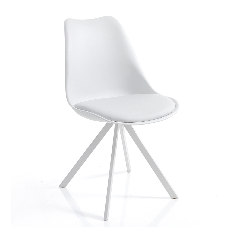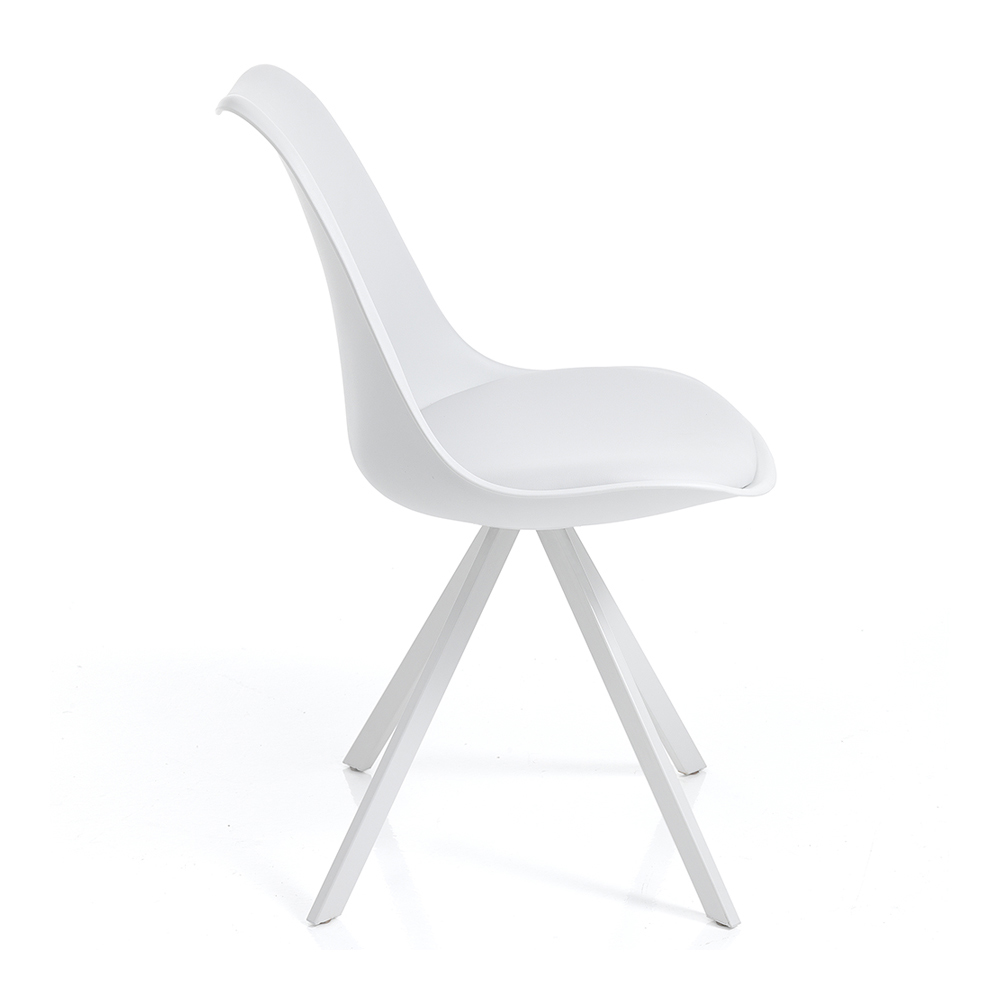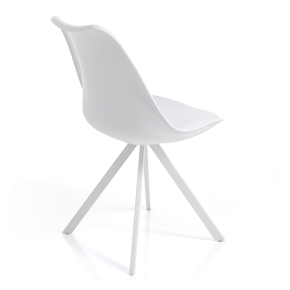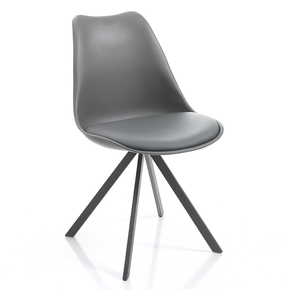 Esszimmerstuhl aus Kunstleder und Polypropylen mit Stahlbeinen, 4 Stück.